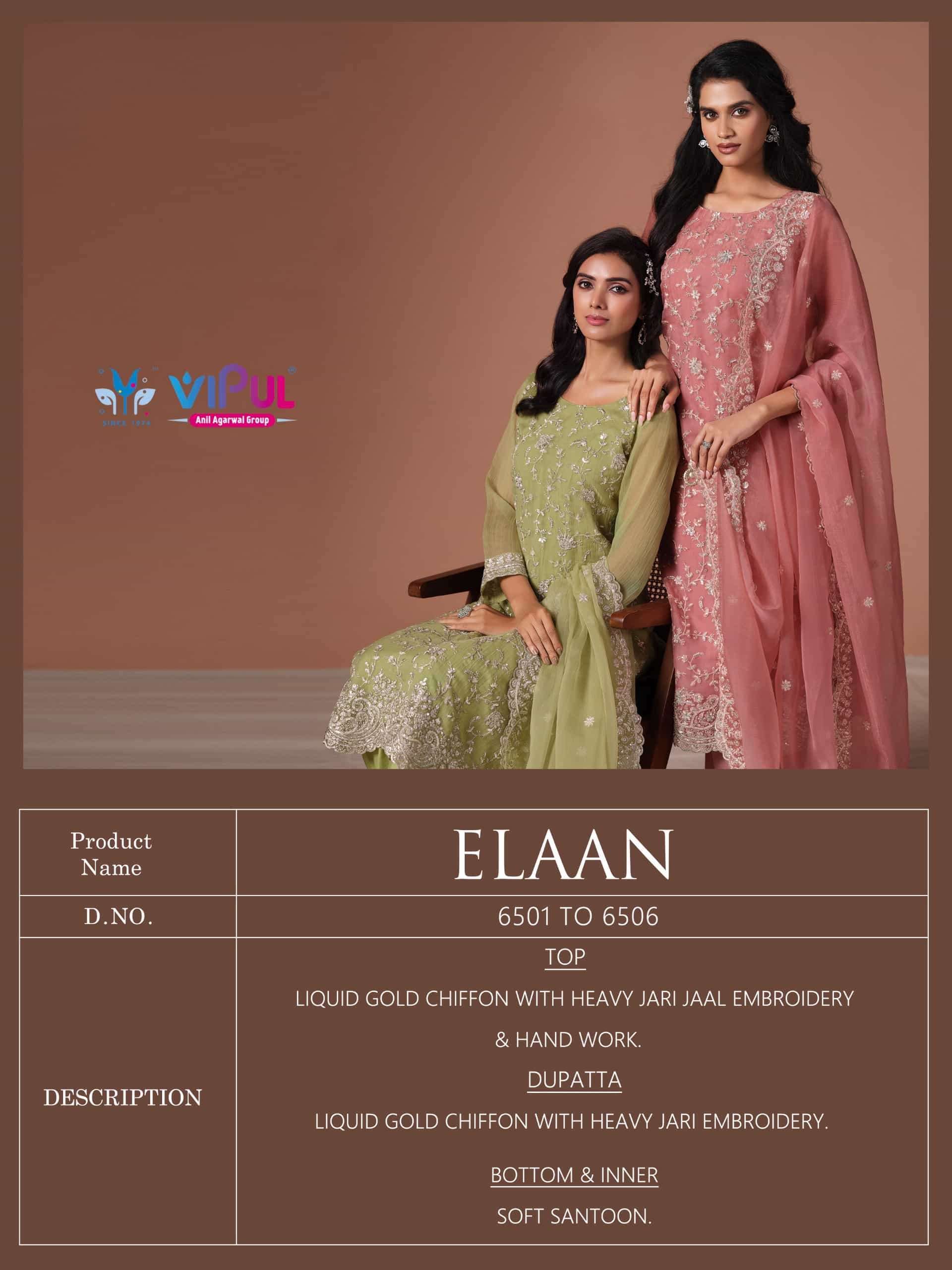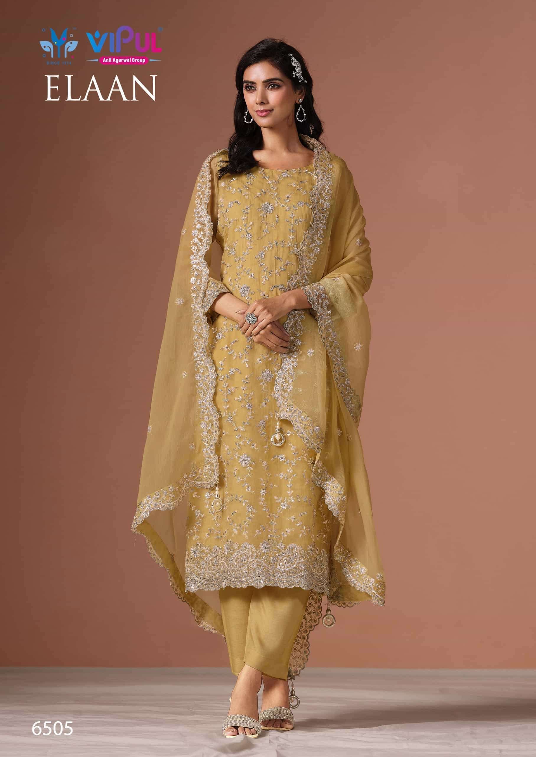 Buy Online VIPUL FASHION ELAAN WEDDING WEAR DESIGNER HANDWORK SUIT FOR WOMEN SUPPLIER 6 Pcs of Full Catalogue at Wholesale Price. Looking for VIPUL FASHION ELAAN WEDDING WEAR DESIGNER HANDWORK SUIT FOR WOMEN SUPPLIER Full Catalouge at Best Price? Buy Now VIPUL FASHION ELAAN WEDDING WEAR DESIGNER HANDWORK SUIT FOR WOMEN SUPPLIER at Wholesale Rate of Rs 14292 with Total 6 Pcs from authroized dealer and supplier of Vipul Fashion Surat Brand. Cost of Each piece is just only Rs 2382 which is very low and affordable price to resale the product in your retail store Ethnic Export is Surat based Wholesale Supplier & Dealer of Vipul Fashion Surat Brand. Click on Brand name to Know more about Vipul Fashion Surat Brand's products.Call or Whatsapp on +91-9825759366 for booking or enquiry