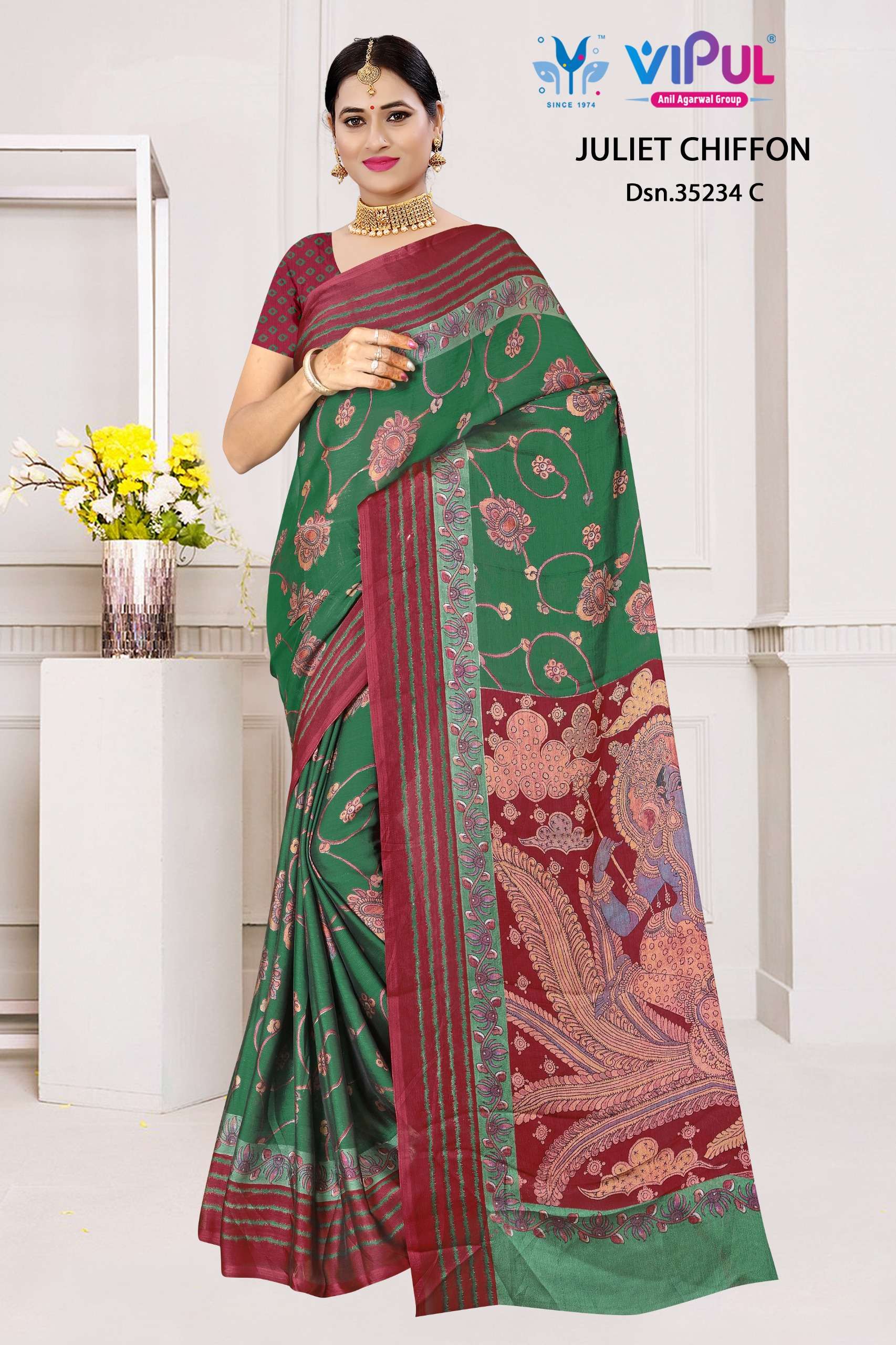 VIPUL SAREE JULIET CHIFFON 35234 MATHCING DESIGNER COLORFUL SAREES LOW PRICE SURAT ONLINE