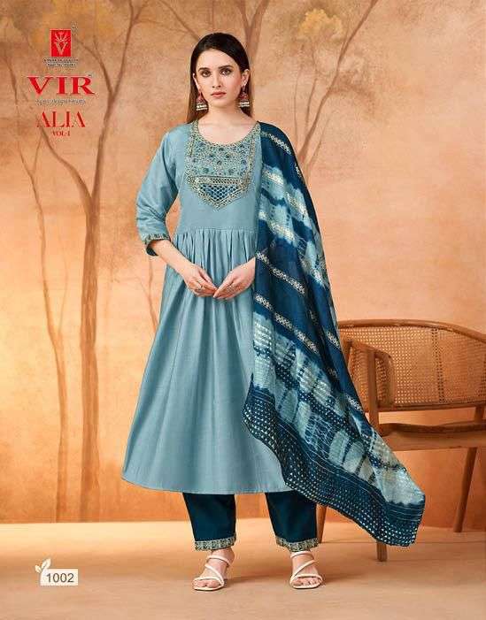 VIR ALIA VOL 1 REGULAR VERTICAN WORK UMBRELLA KURIT PANT DUPATTA DEALER