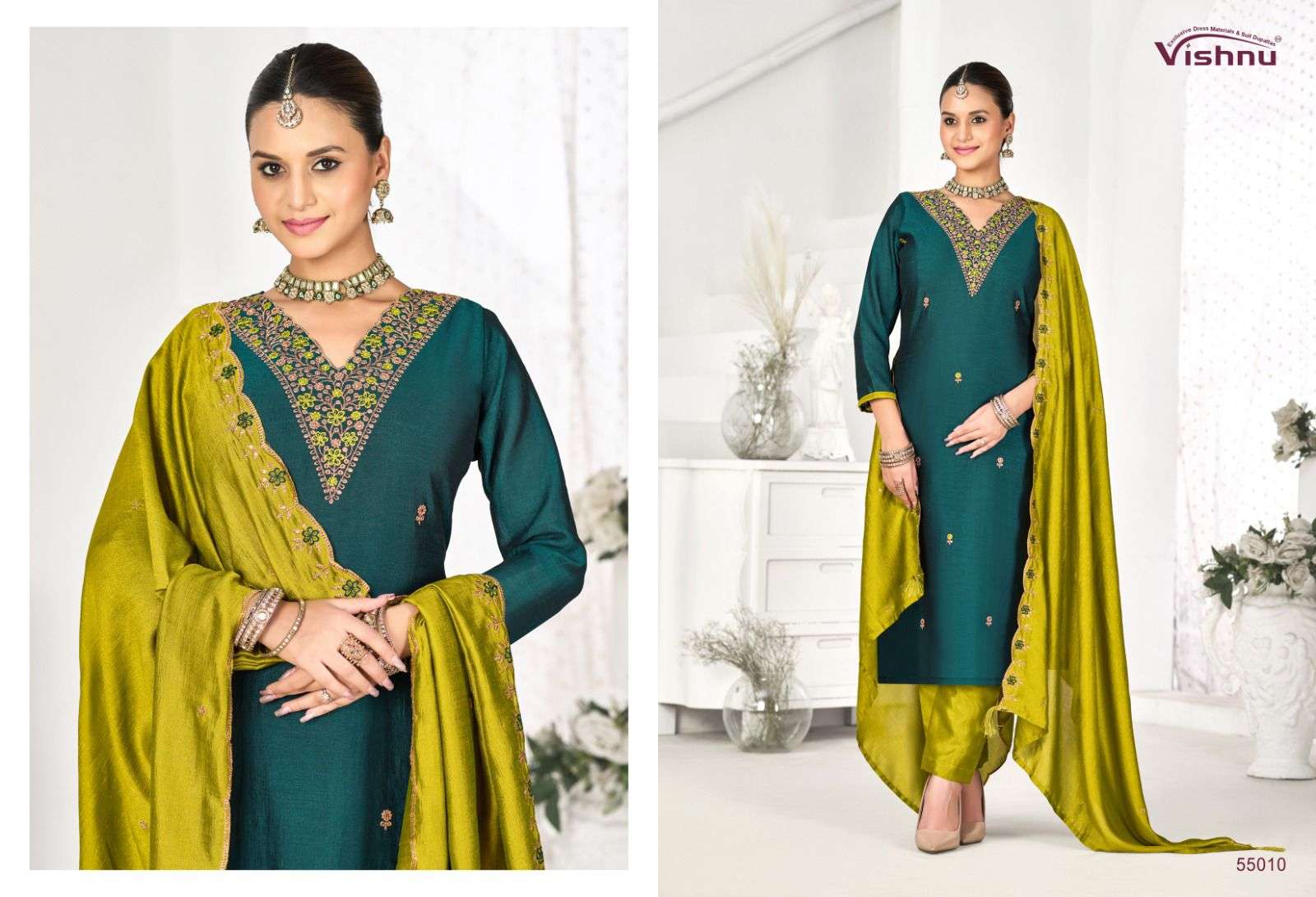 Buy Online VISHNU SUNAYANA VICHITRA SILK DESIGNER SALWAR SUIT FESTIVAL BEST DEALER 12 Pcs of Full Catalogue at Wholesale Price. Looking for VISHNU SUNAYANA VICHITRA SILK DESIGNER SALWAR SUIT FESTIVAL BEST DEALER Full Catalouge at Best Price? Buy Now VISHNU SUNAYANA VICHITRA SILK DESIGNER SALWAR SUIT FESTIVAL BEST DEALER at Wholesale Rate of Rs 8340 with Total 12 Pcs from authroized dealer and supplier of VISHNU IMPEX Brand. Cost of Each piece is just only Rs 695 which is very low and affordable price to resale the product in your retail store Ethnic Export is Surat based Wholesale Supplier & Dealer of VISHNU IMPEX Brand. Click on Brand name to Know more about VISHNU IMPEX Brand's products.Call or Whatsapp on +91-9825759366 for booking or enquiry
