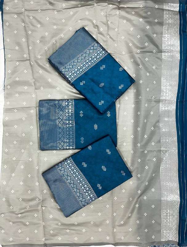 🔱 *KP-R:- 258* 🔱 *FABRIC : SOFT LICHI SILK CLOTH.* *DESIGN : BEAUTIFUL RICH PALLU & JACQUARD WORK ON ALL OVER THE SAREE.* *BLOUSE : CONTRAST EXCLUSIVE JACQUARD BORDER.*