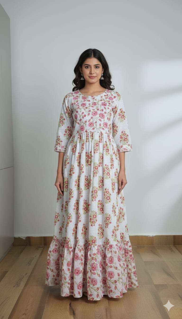 Women A-Line Pure Cotton full length Maxi Dress🌻 Fabric: Pure Cotton Size: M to 3xl SINGLE ALSO AVA |