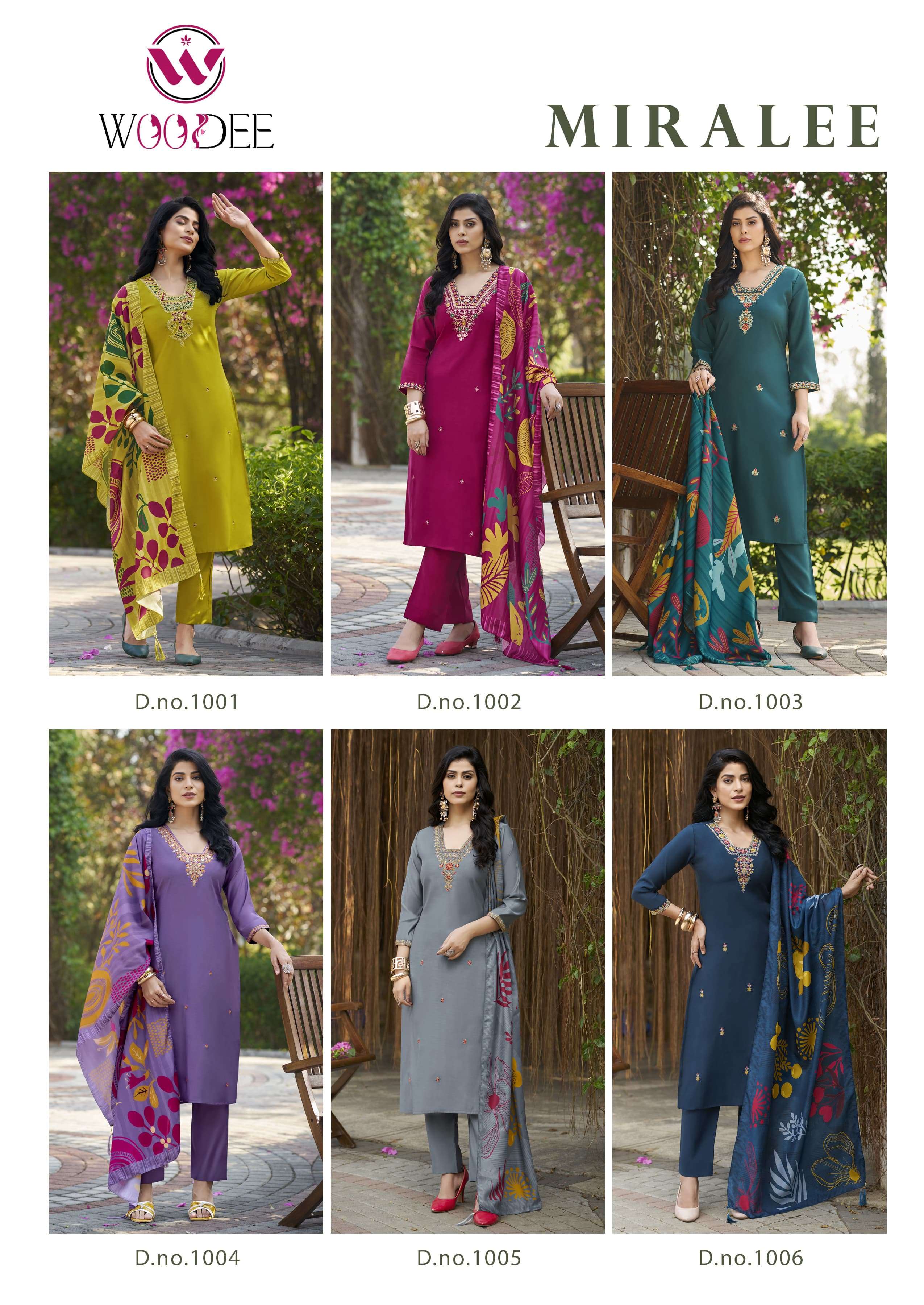 Buy Online WOOGLEE MIRALEE PREMIUM VISCOSE SILK READYMADE SUIT TO SPCIAL MOMENT DRESS 6 Pcs of Full Catalogue at Wholesale Price. Looking for WOOGLEE MIRALEE PREMIUM VISCOSE SILK READYMADE SUIT TO SPCIAL MOMENT DRESS Full Catalouge at Best Price? Buy Now WOOGLEE MIRALEE PREMIUM VISCOSE SILK READYMADE SUIT TO SPCIAL MOMENT DRESS at Wholesale Rate of Rs 5130 with Total 6 Pcs from authroized dealer and supplier of wooglee Brand. Cost of Each piece is just only Rs 855 which is very low and affordable price to resale the product in your retail store Ethnic Export is Surat based Wholesale Supplier & Dealer of wooglee Brand. Click on Brand name to Know more about wooglee Brand's products.Call or Whatsapp on +91-9825759366 for booking or enquiry