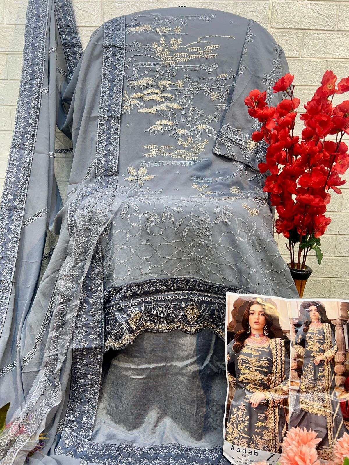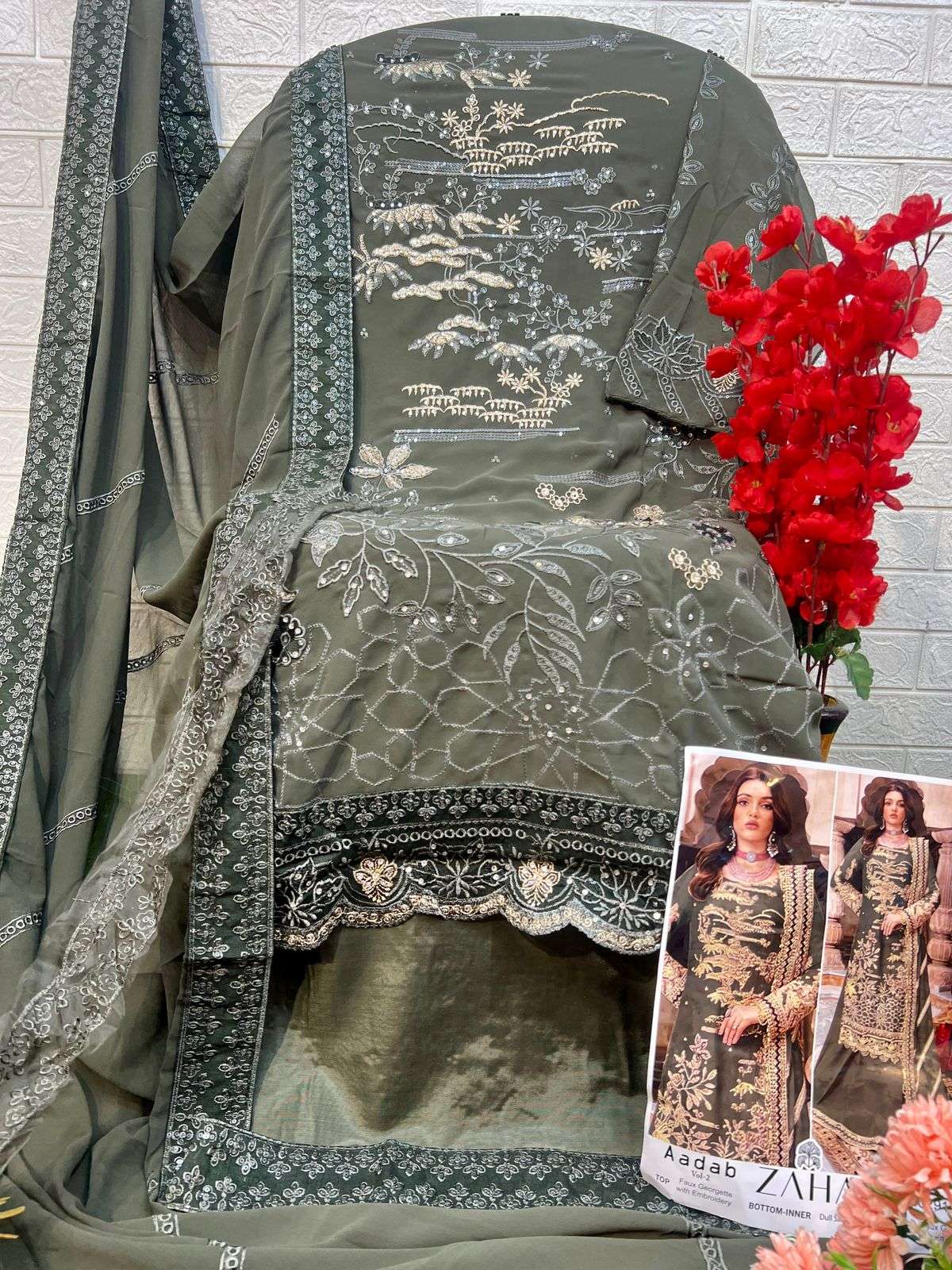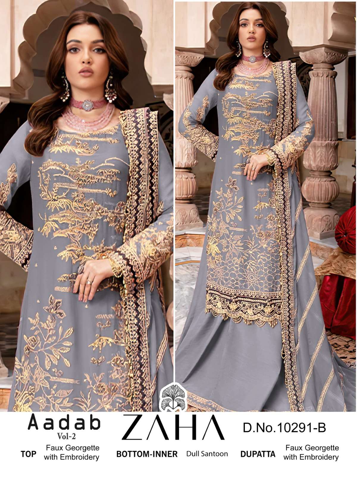 ZAHA AADAB VOL 2 10291 GEORGETTE EMBROIDERY WORK PAKISTANI SHARARA SUIT FOR SHADI SUPPLIER SURAT