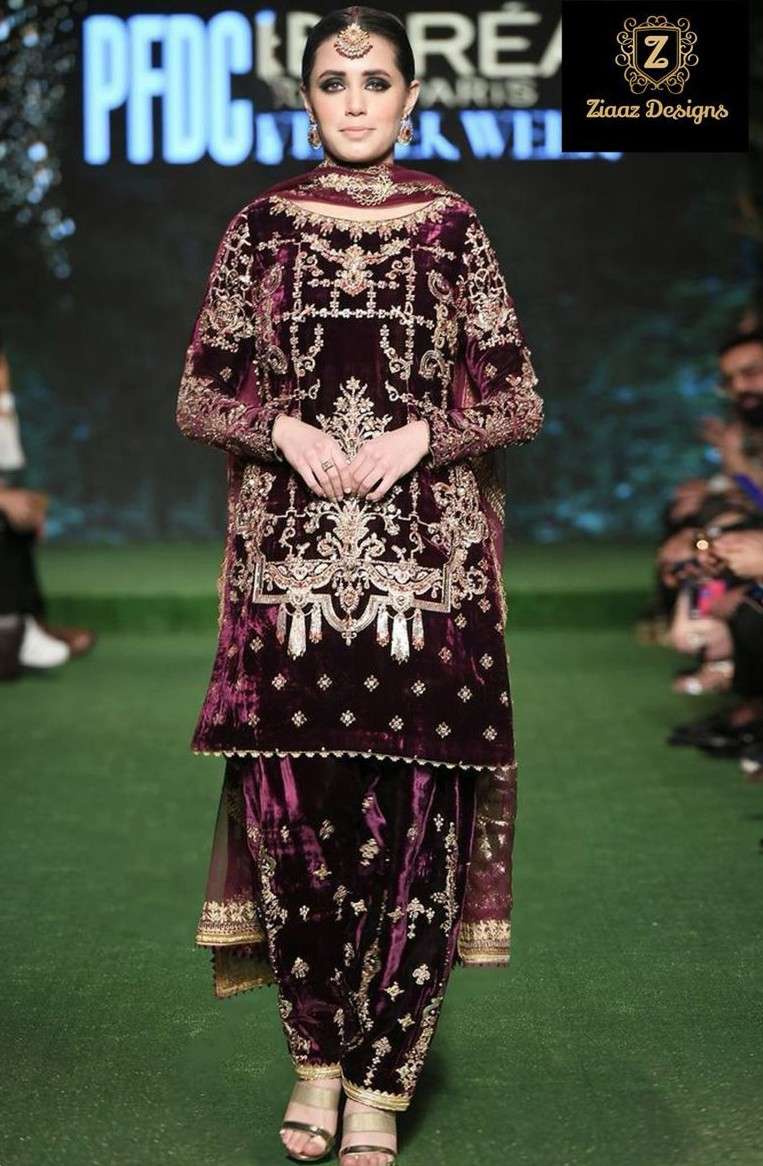 ZIAAZ DESIGNS 671 PURE 9000 VELVET BEAUTIFUL EMBROIDERY WORK SUIT TO FESTIVAL CATALOG