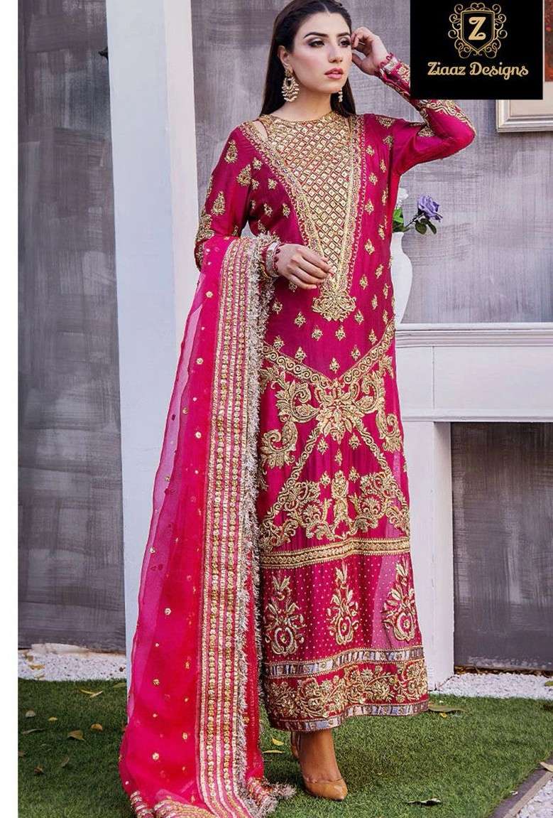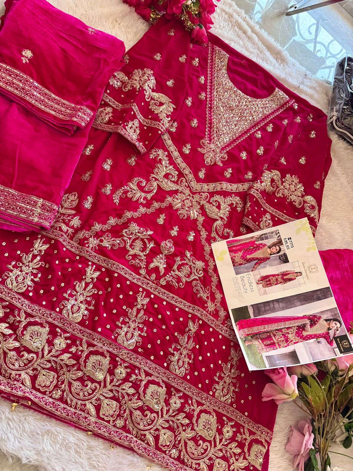 ZIAAZ DESIGNS 672 PURE 9000 VELVET BEAUTIFUL EMBROIDERY PINK PAKISTANI SUIT TO WEDDING WEAR
