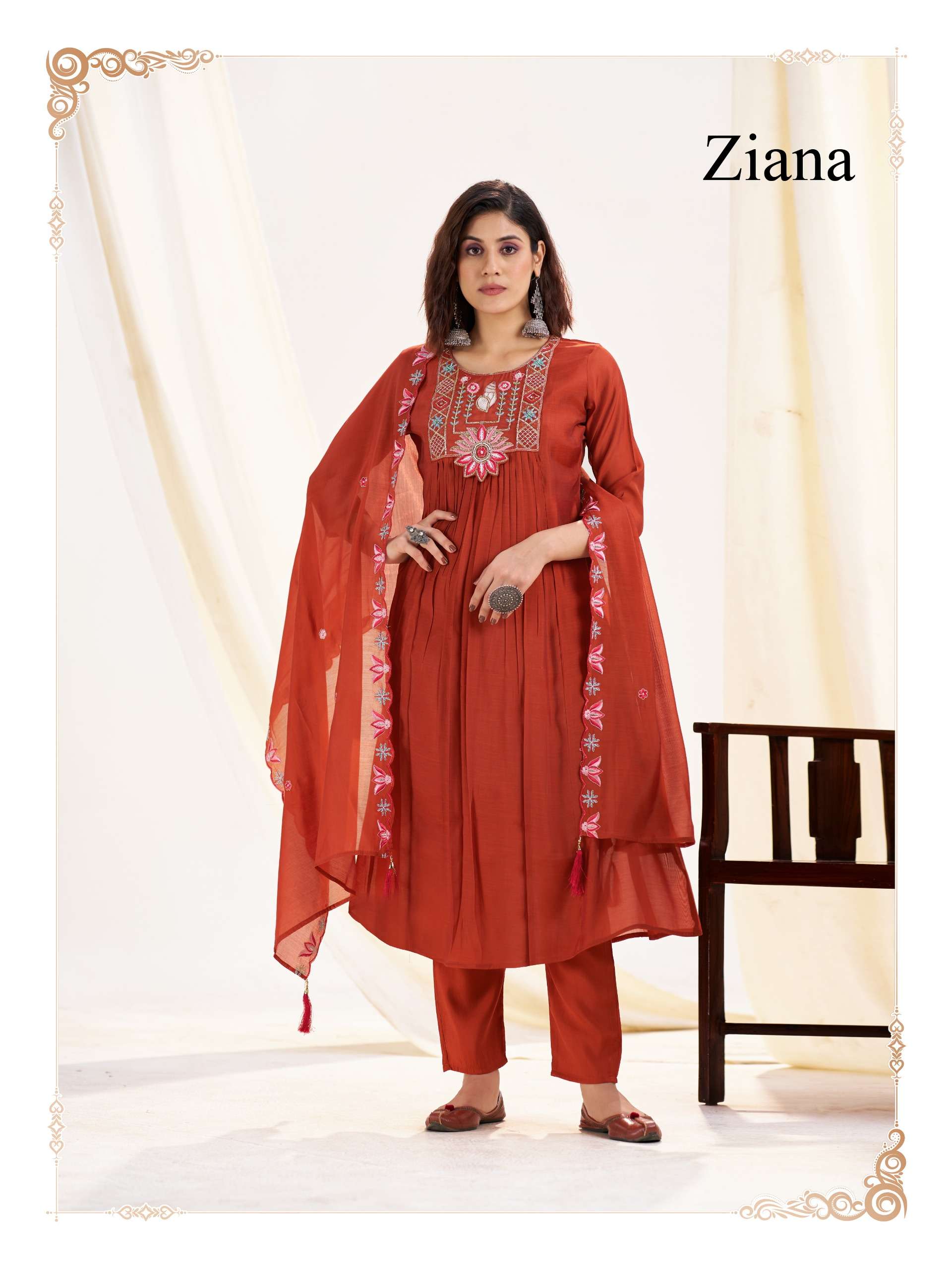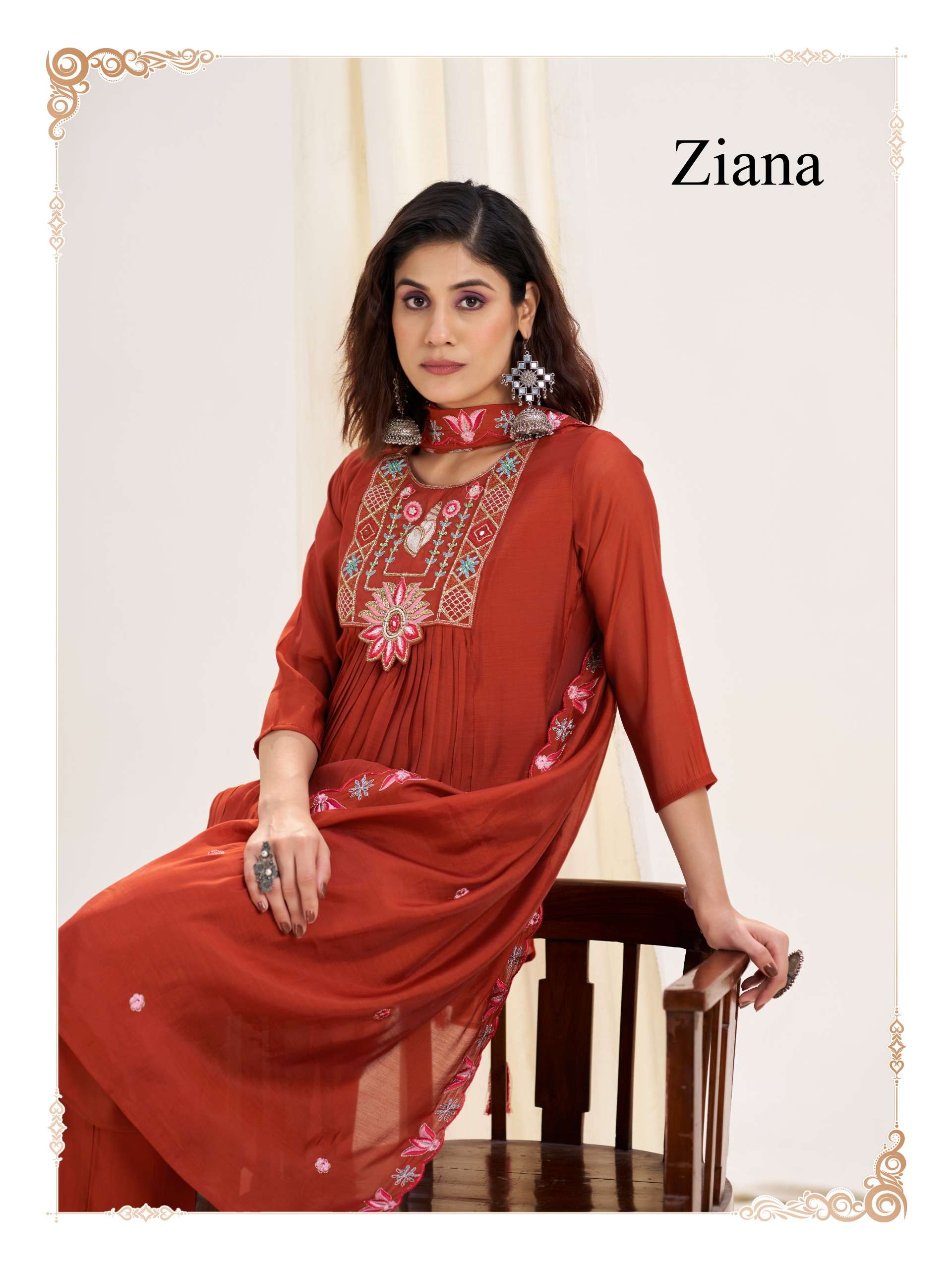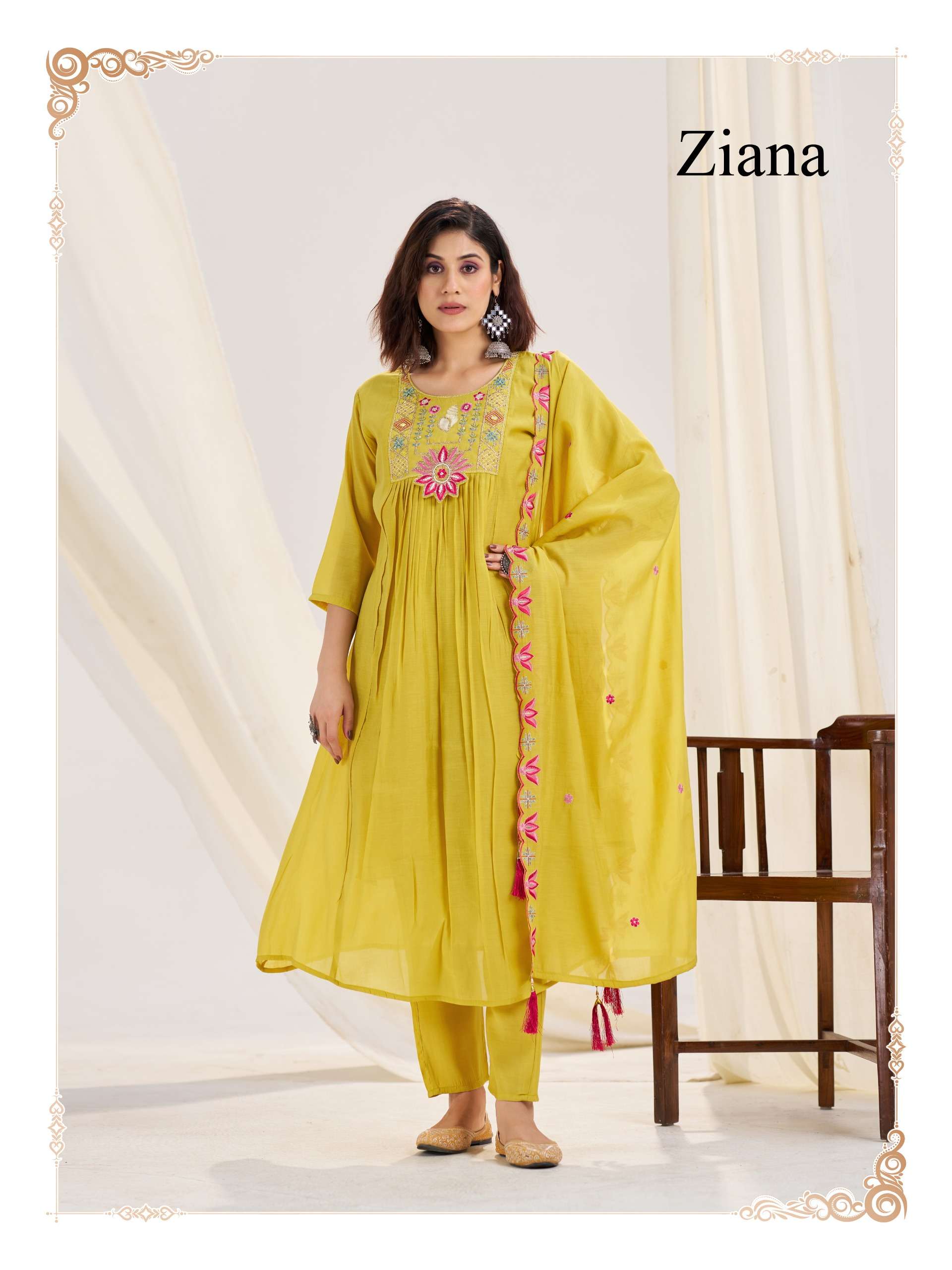ZIANA BOUTIQUE STYLE SOFT MULL CHANDERI SILK DESIGNER KURTI SUIT TO FESTIVAL CATALOG