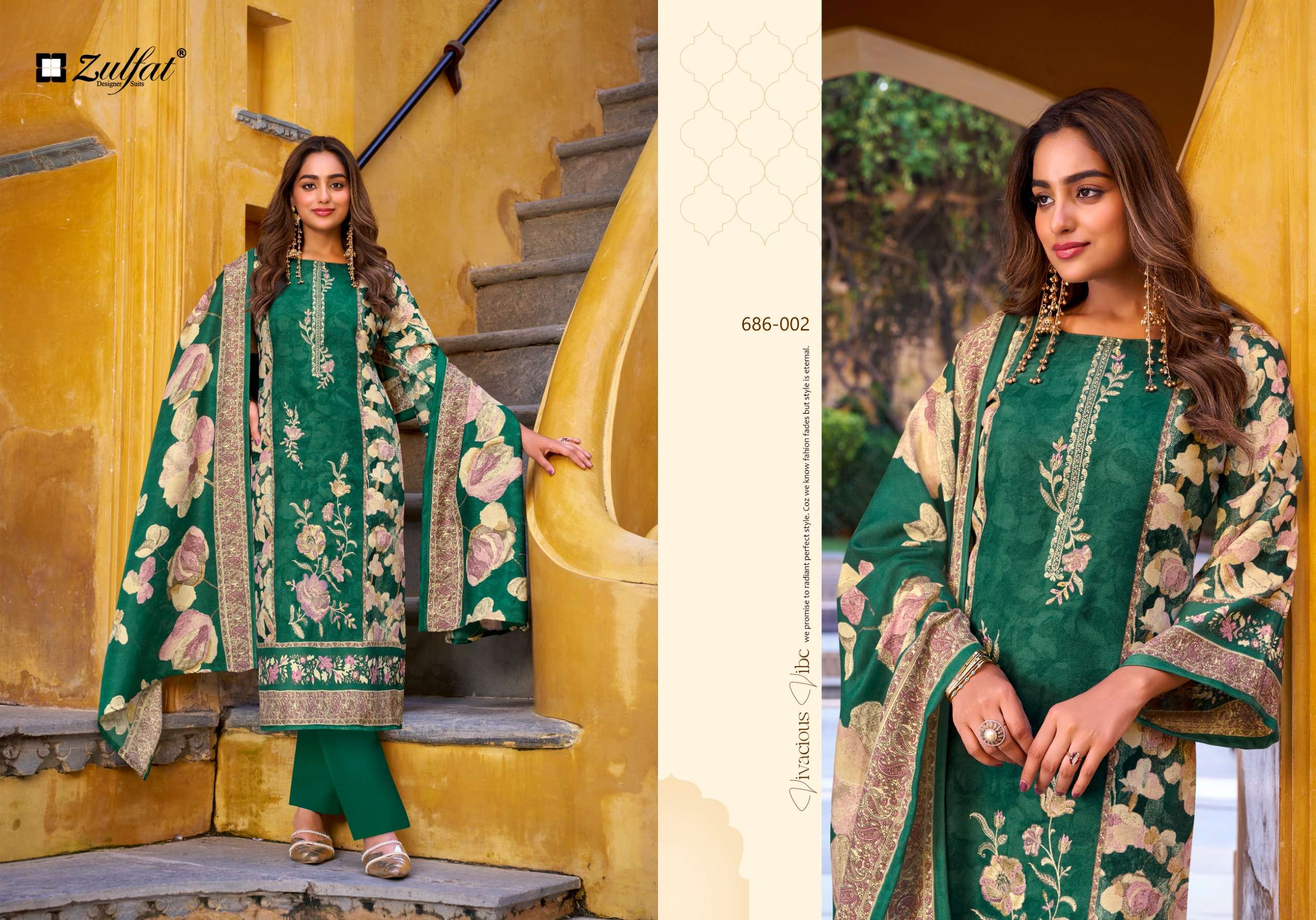 Buy Online ZULFAT DESIGNER SUITS KALAMKAARI WOOL PASHMINA FUL WORK EXCLUSIVE PAKISTANI STYLE SUIT SUPPLIER 6 Pcs of Full Catalogue at Wholesale Price. Looking for ZULFAT DESIGNER SUITS KALAMKAARI WOOL PASHMINA FUL WORK EXCLUSIVE PAKISTANI STYLE SUIT SUPPLIER Full Catalouge at Best Price? Buy Now ZULFAT DESIGNER SUITS KALAMKAARI WOOL PASHMINA FUL WORK EXCLUSIVE PAKISTANI STYLE SUIT SUPPLIER at Wholesale Rate of Rs 3300 with Total 6 Pcs from authroized dealer and supplier of ZUFAT DESIGNER SUIT Brand. Cost of Each piece is just only Rs 550 which is very low and affordable price to resale the product in your retail store Ethnic Export is Surat based Wholesale Supplier & Dealer of ZUFAT DESIGNER SUIT Brand. Click on Brand name to Know more about ZUFAT DESIGNER SUIT Brand's products.Call or Whatsapp on +91-9825759366 for booking or enquiry