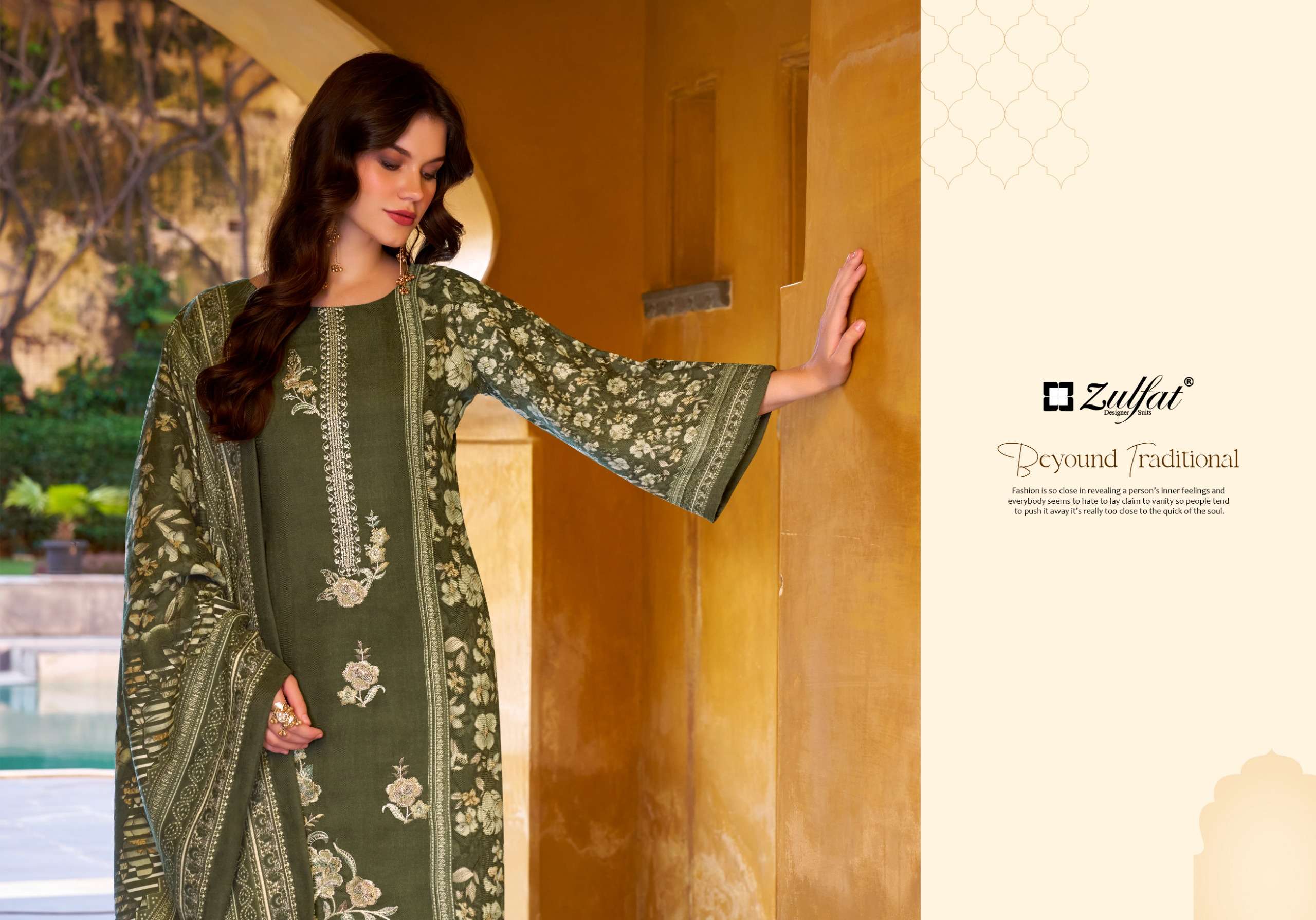 Title | ZULFAT DESIGNER SUITS KALAMKAARI WOOL PASHMINA FUL WORK EXCLUSIVE PAKISTANI STYLE SUIT SUPPLIER |