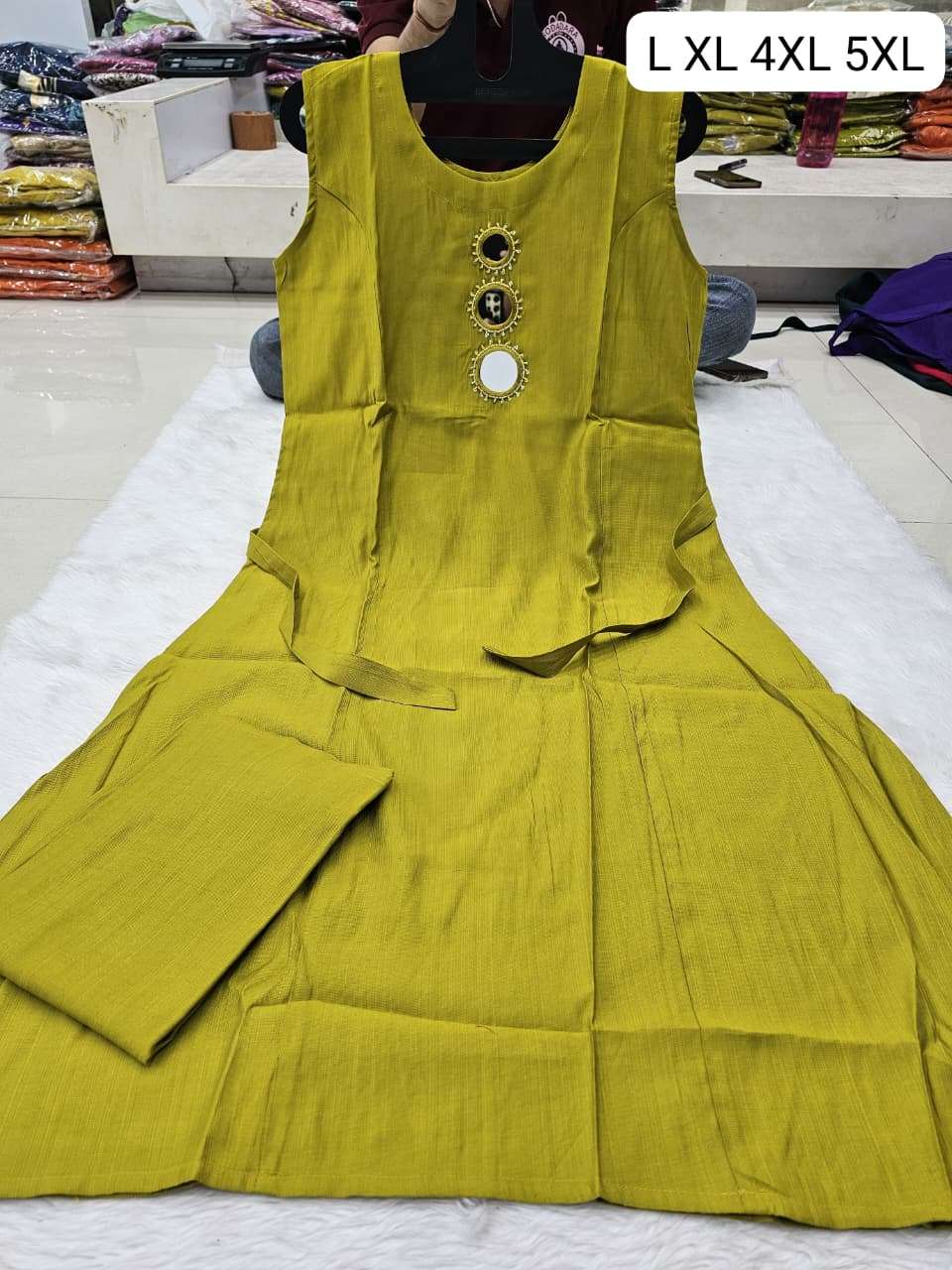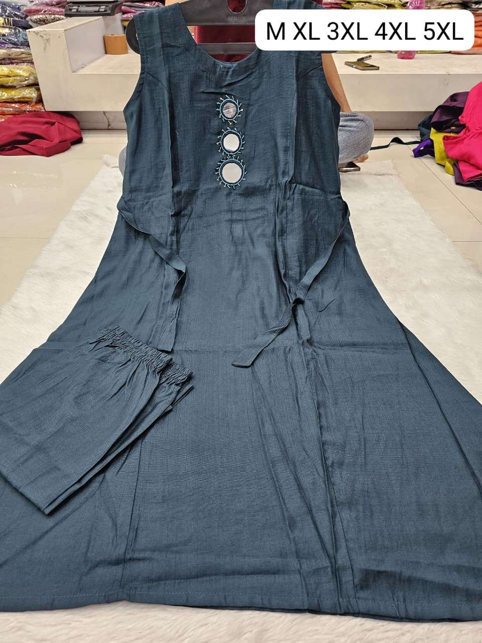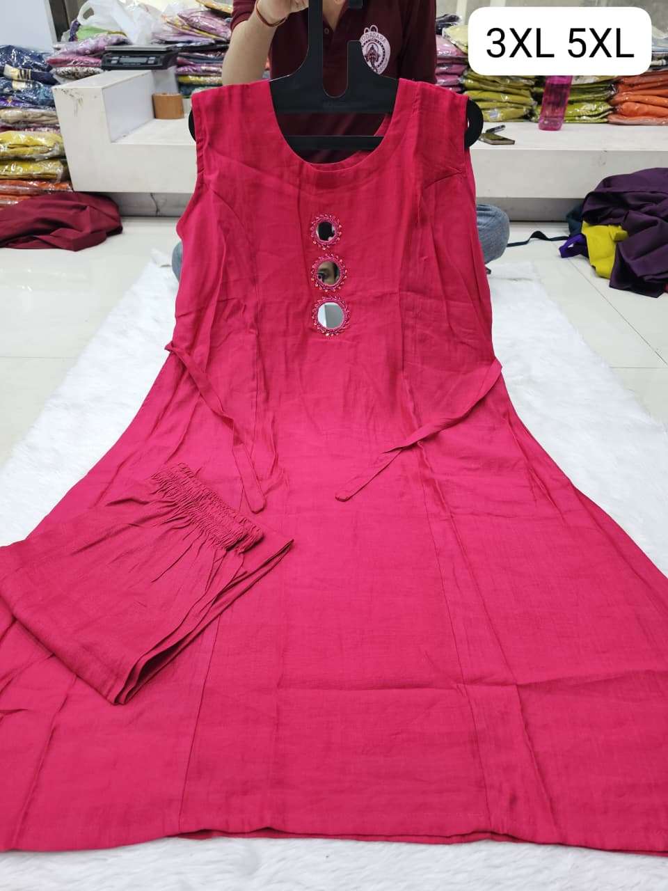 Aline top n semi plazo set Pure Vetican fabric With Real Mirror Work Sleeves atteched in side Size mantion on photos M to xxl -670/- 3xl to 5xl -700/- SINGLE ALSO AVA |