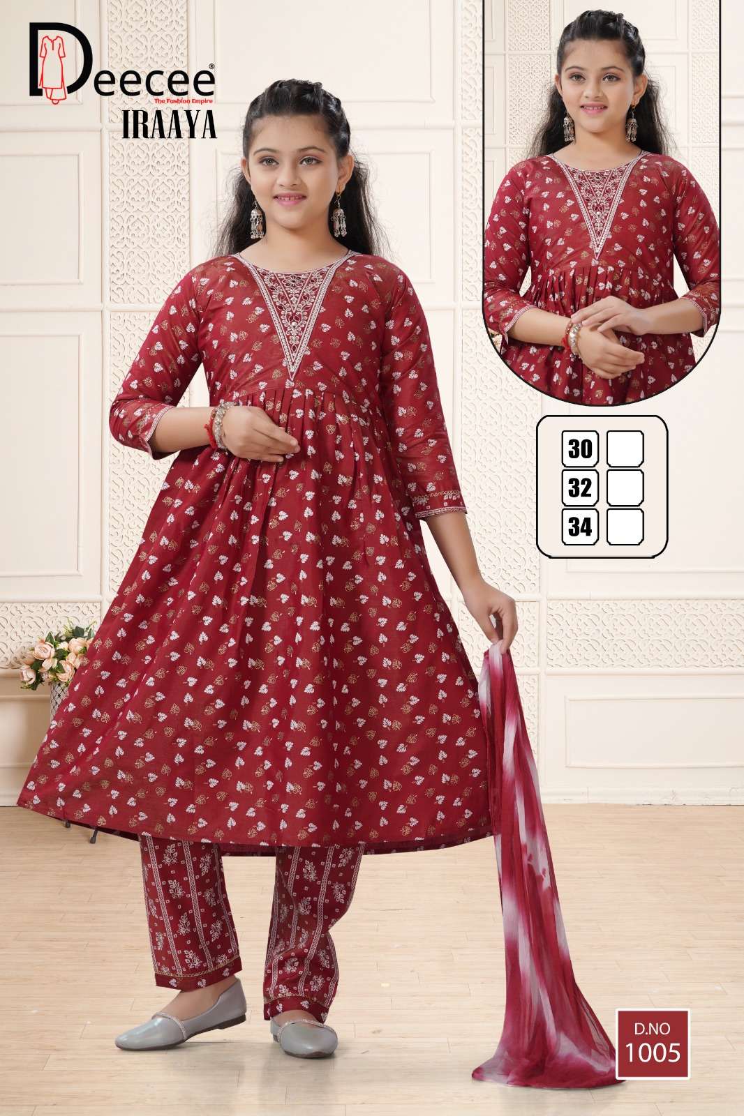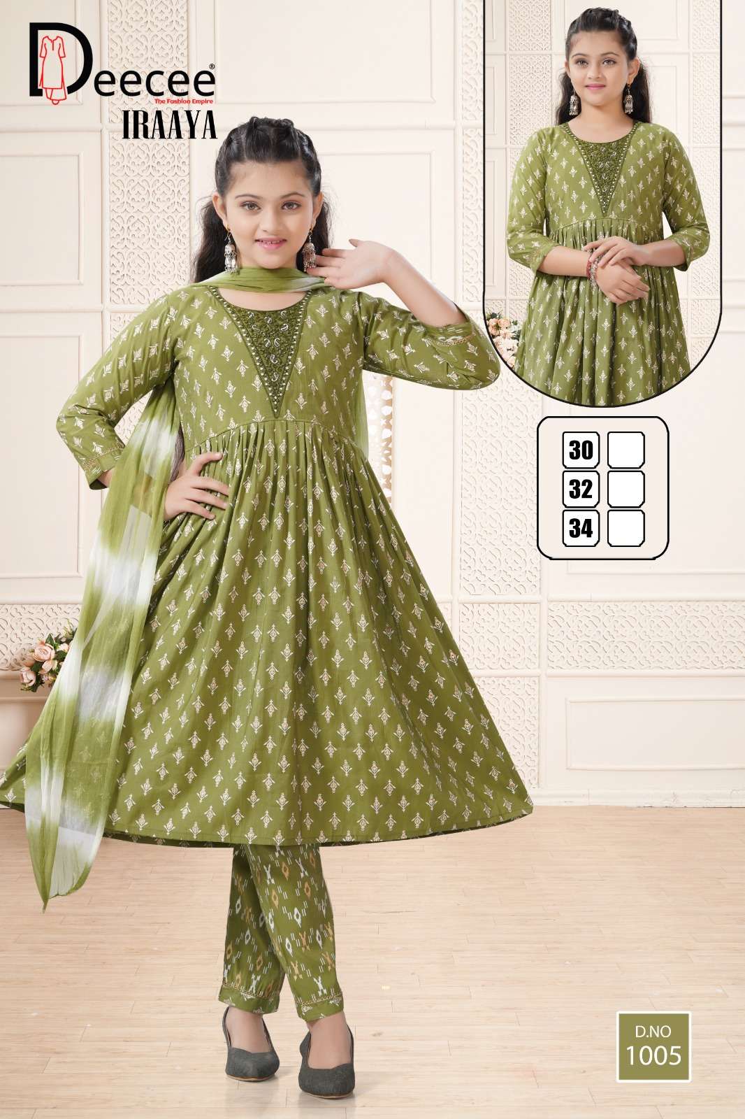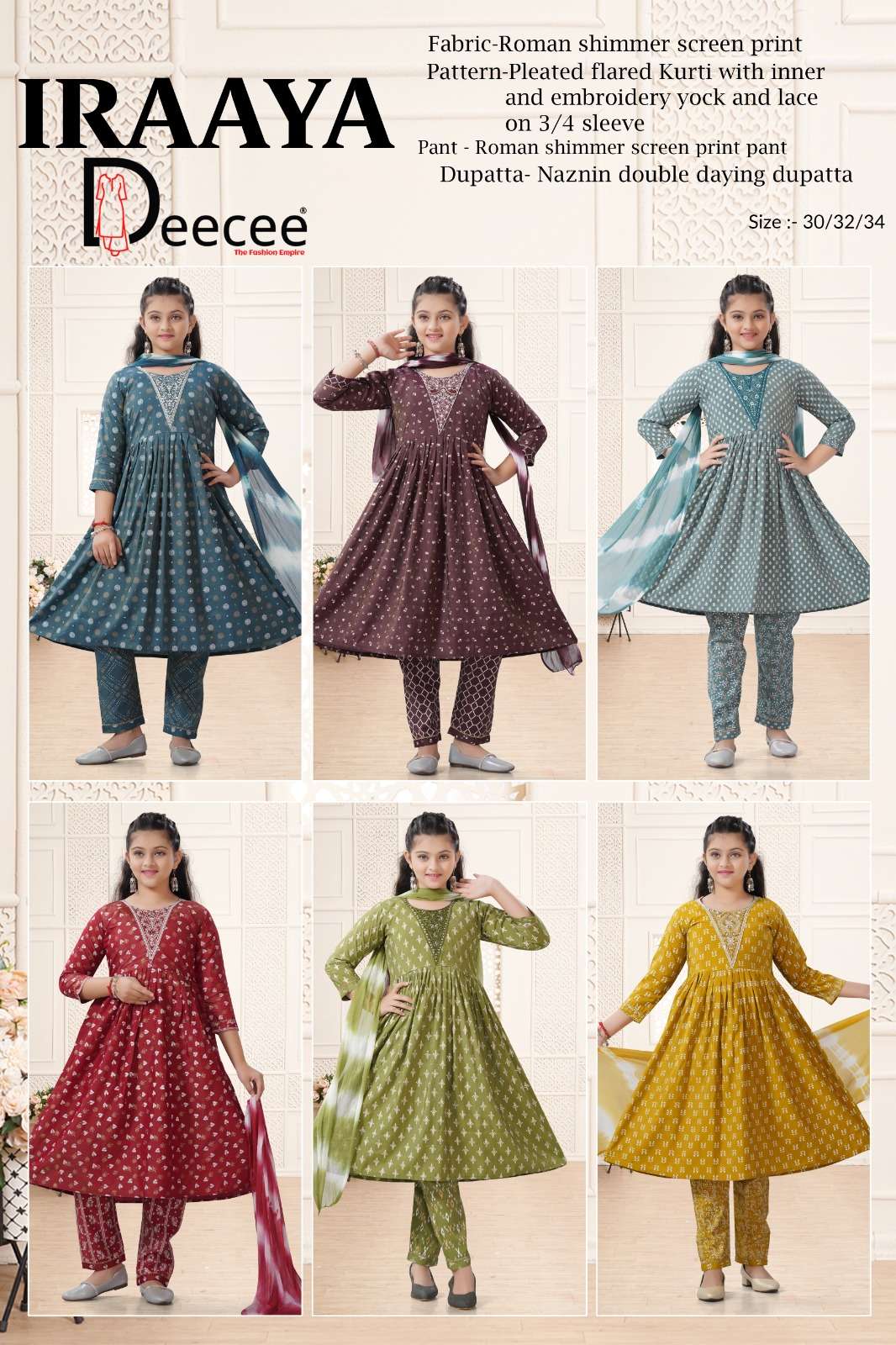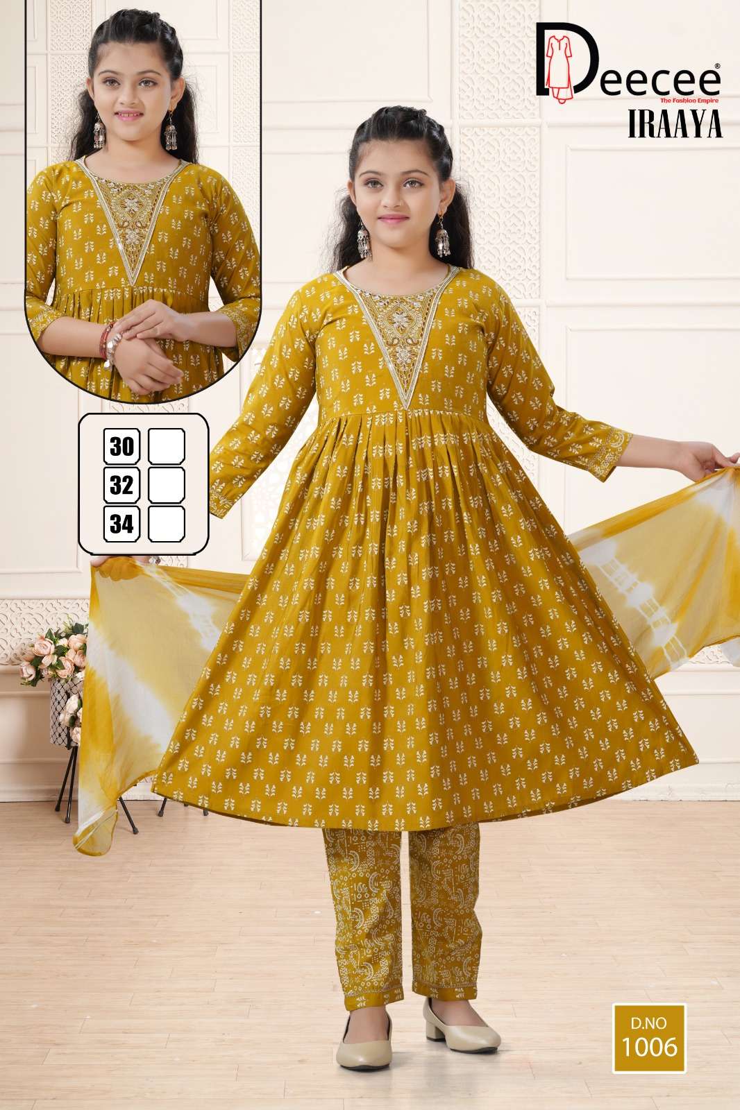 Buy Online DEECEE IRAAYA KIDS WEAR FESTIVAL SHIMMER FLARED KURTI WEAR DEALER 6 Pcs of Full Catalogue at Wholesale Price. Looking for DEECEE IRAAYA KIDS WEAR FESTIVAL SHIMMER FLARED KURTI WEAR DEALER Full Catalouge at Best Price? Buy Now DEECEE IRAAYA KIDS WEAR FESTIVAL SHIMMER FLARED KURTI WEAR DEALER at Wholesale Rate of Rs 3720 with Total 6 Pcs from authroized dealer and supplier of DEECEE FASHION Brand. Cost of Each piece is just only Rs 620 which is very low and affordable price to resale the product in your retail store Ethnic Export is Surat based Wholesale Supplier & Dealer of DEECEE FASHION Brand. Click on Brand name to Know more about DEECEE FASHION Brand's products.Call or Whatsapp on +91-9825759366 for booking or enquiry