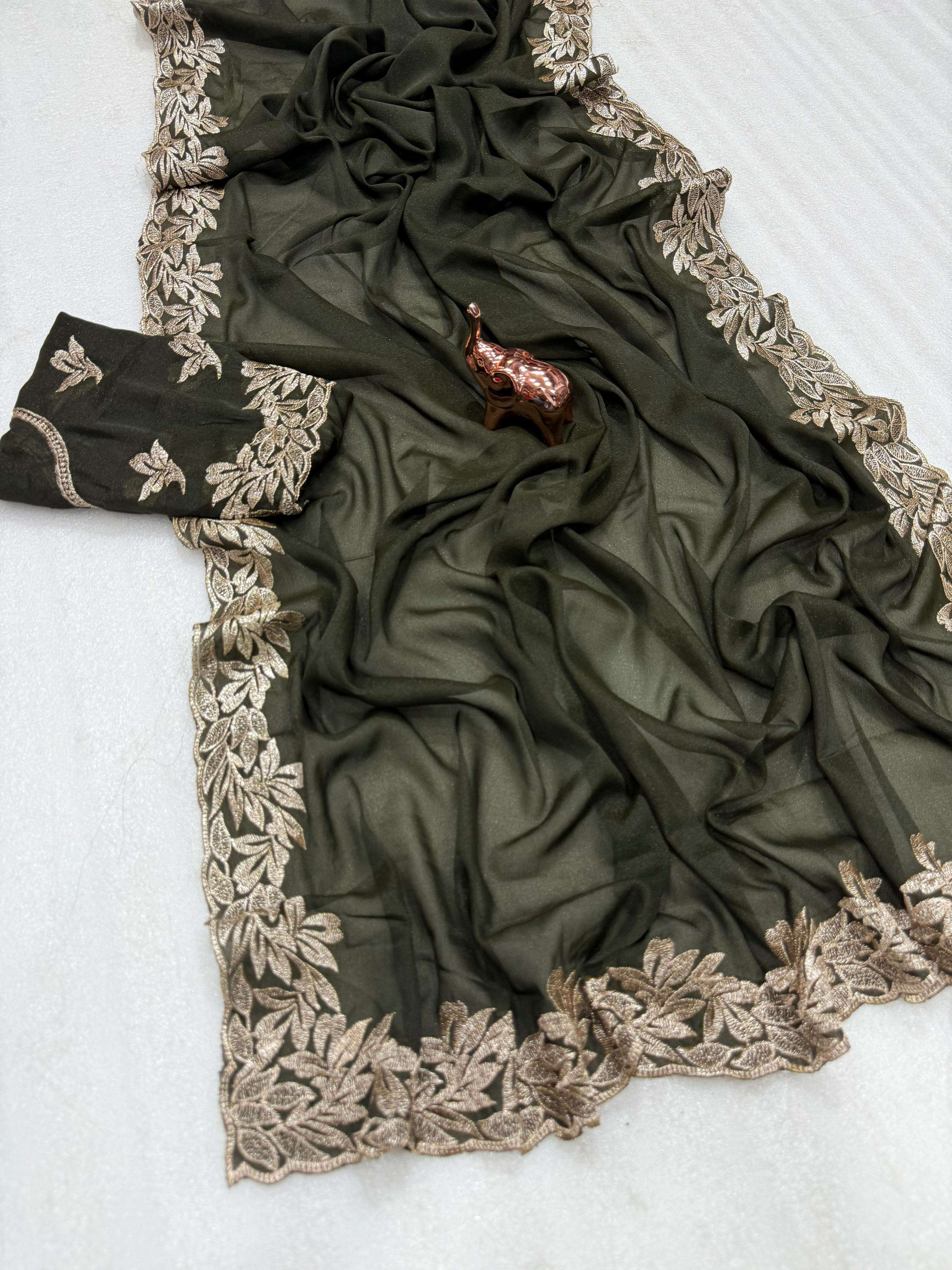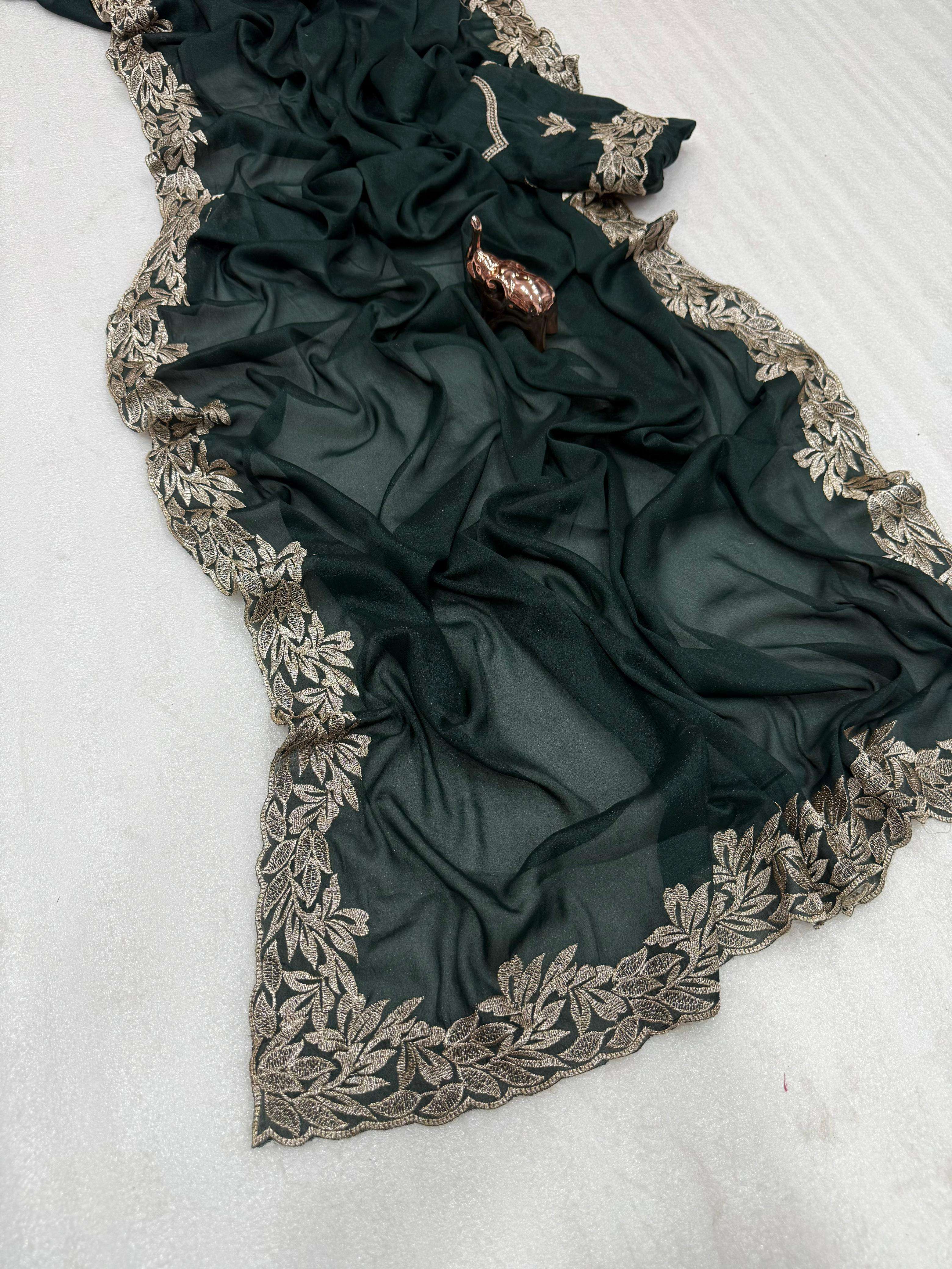 Embroidery Work Border Georgette Fabric Fancy Look Saree Best COllection