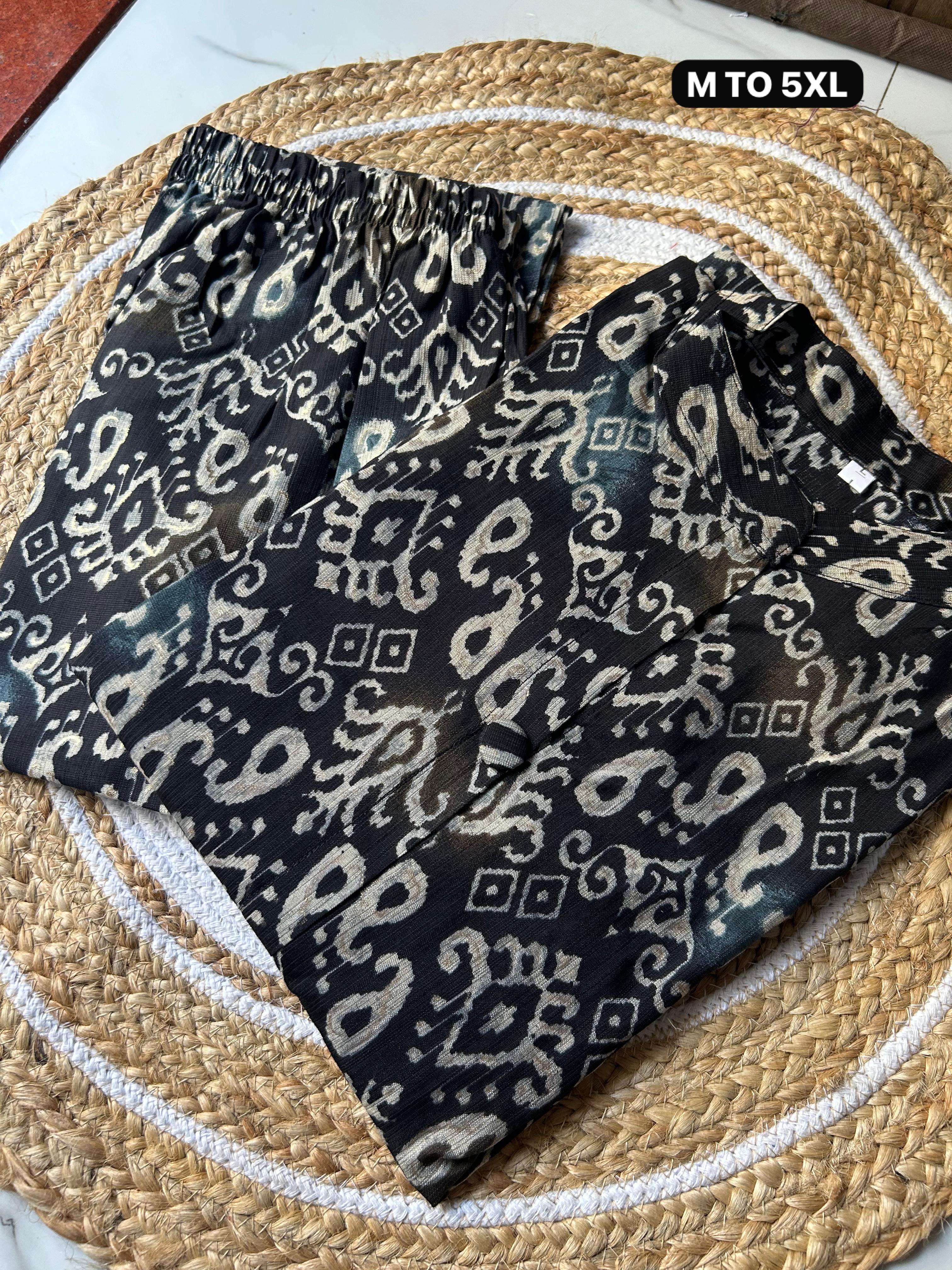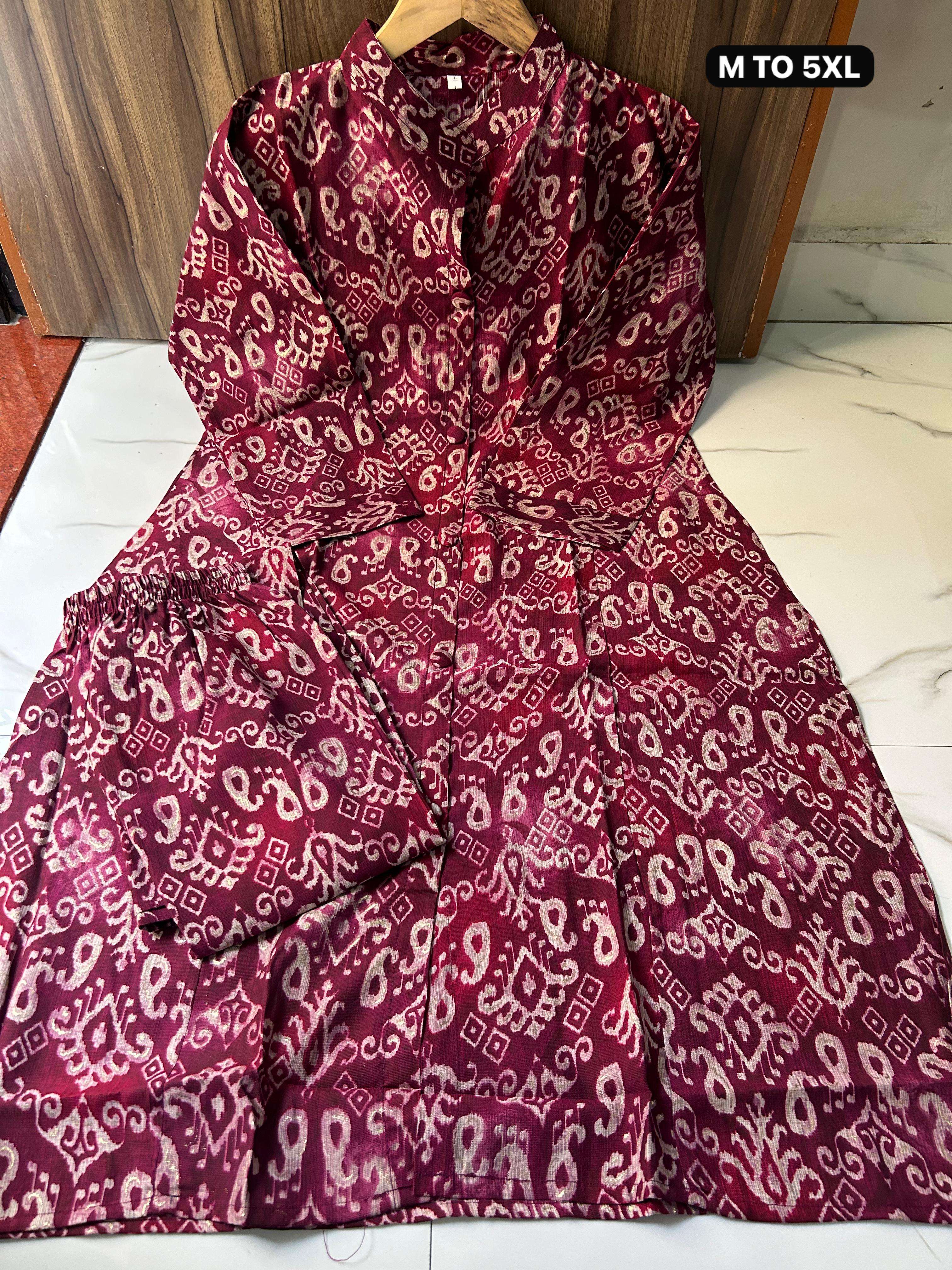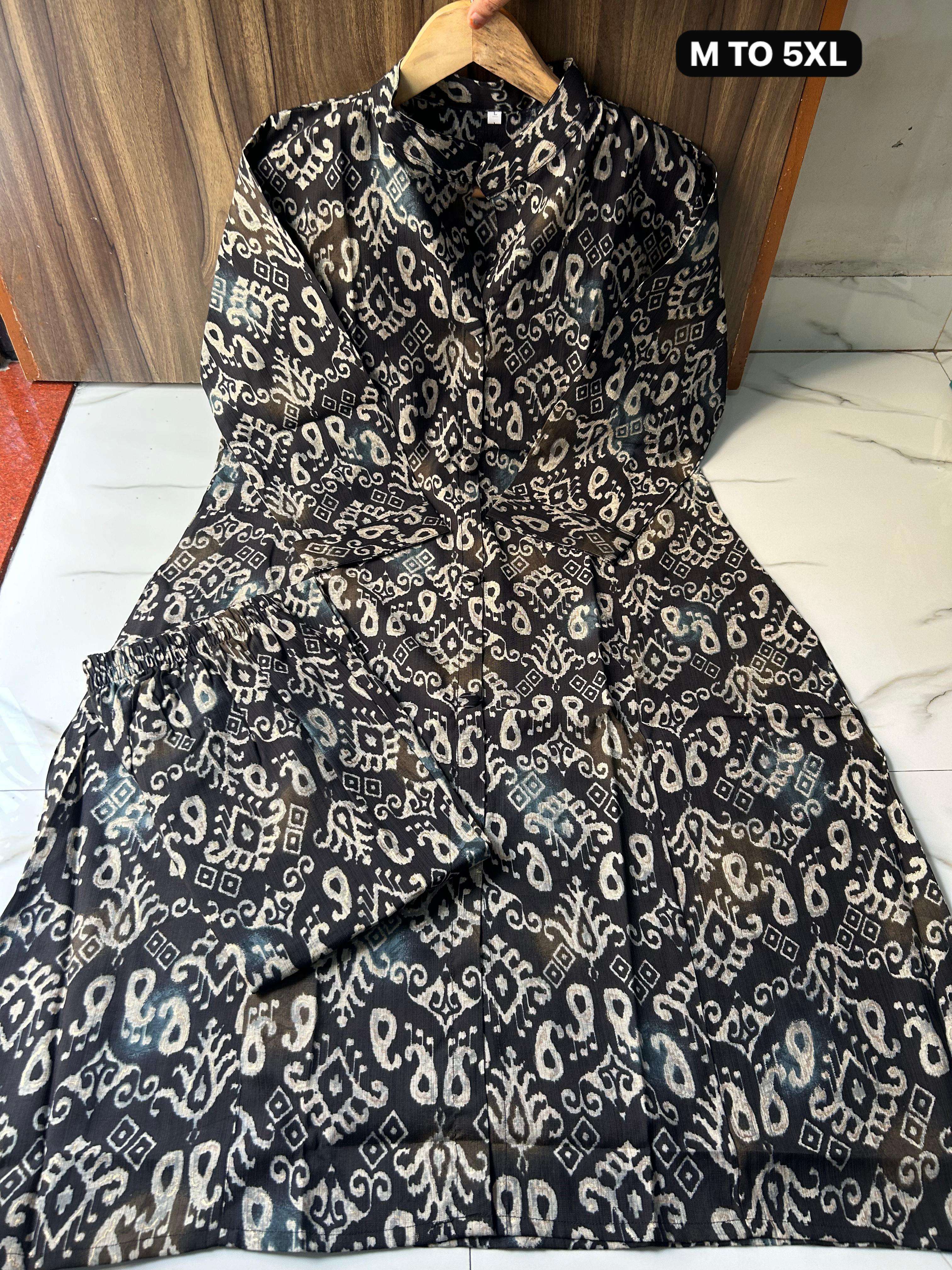 LONG A LINE KURTIS WITH COMFORTABLE PLAZO FABRIC = PREMIUM VARTICAN WITH FULL INTARLOCK & KURTIS ONE SAIDE POCKET PRICE = M TO 2XL :670+ PRICE = 3XL TO 5XL :720+ SINGLE ALSO AVA |