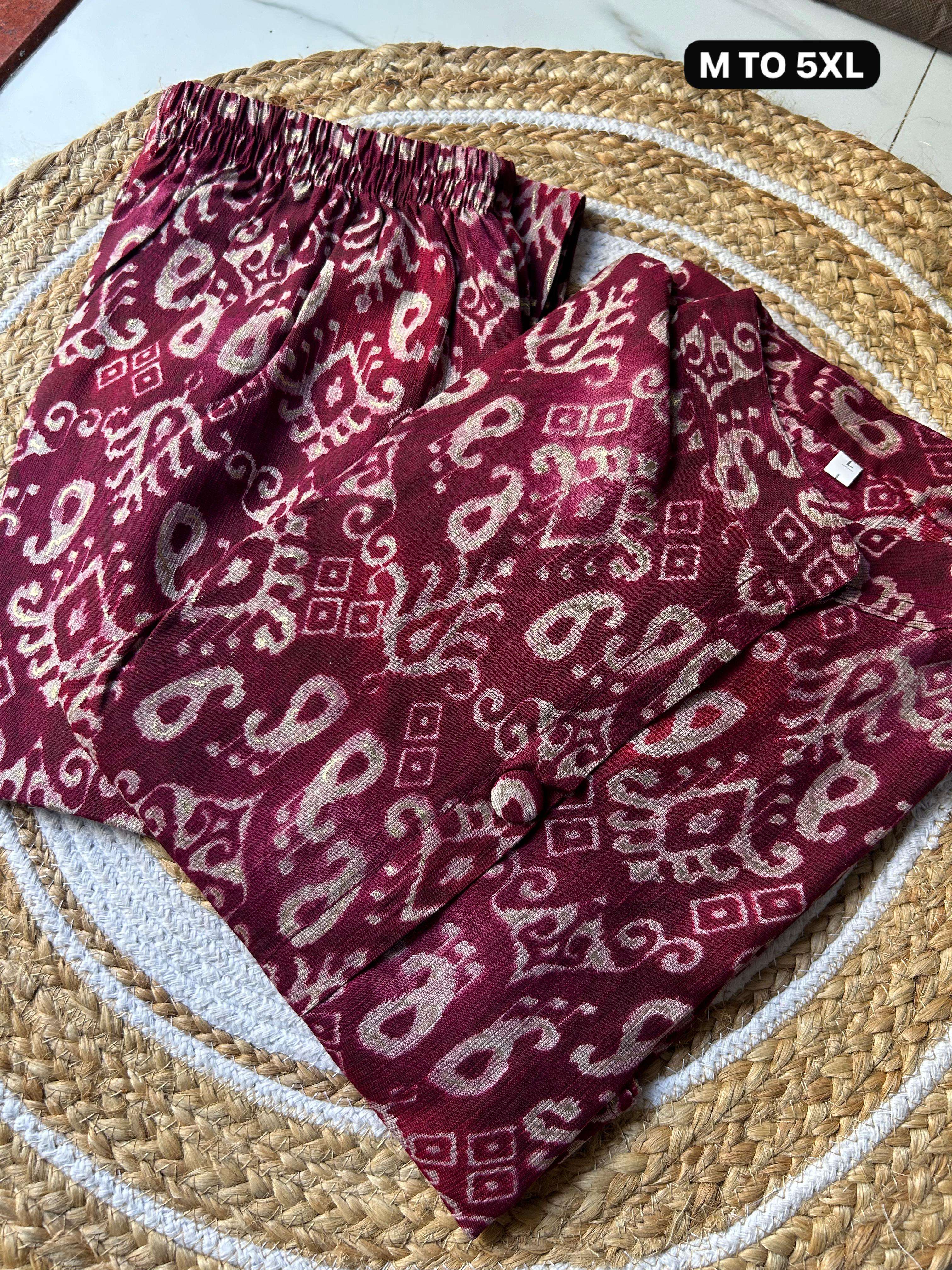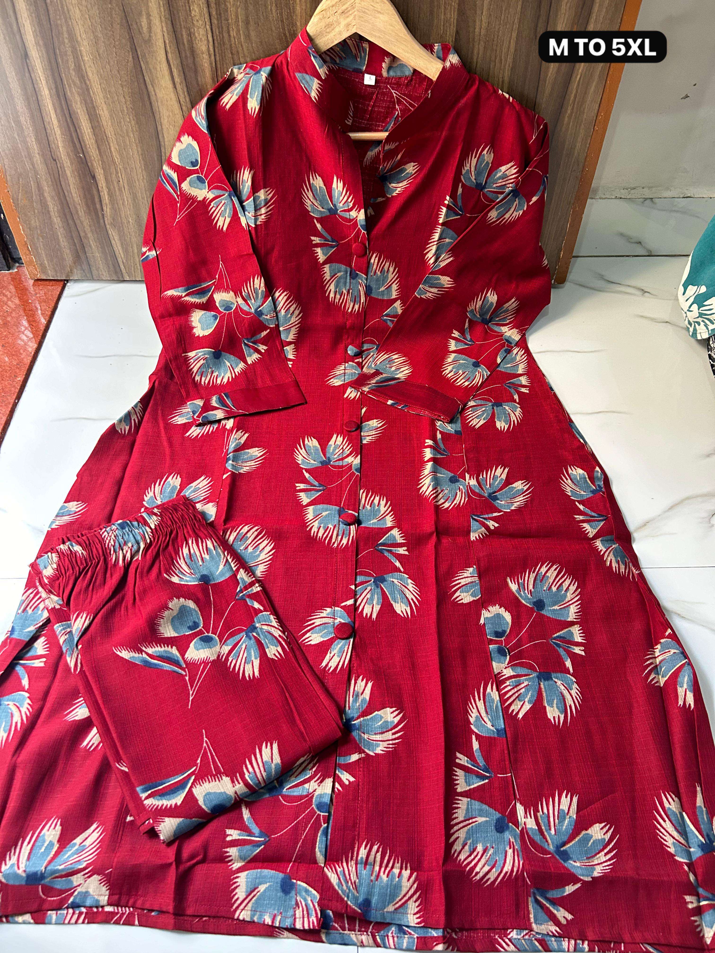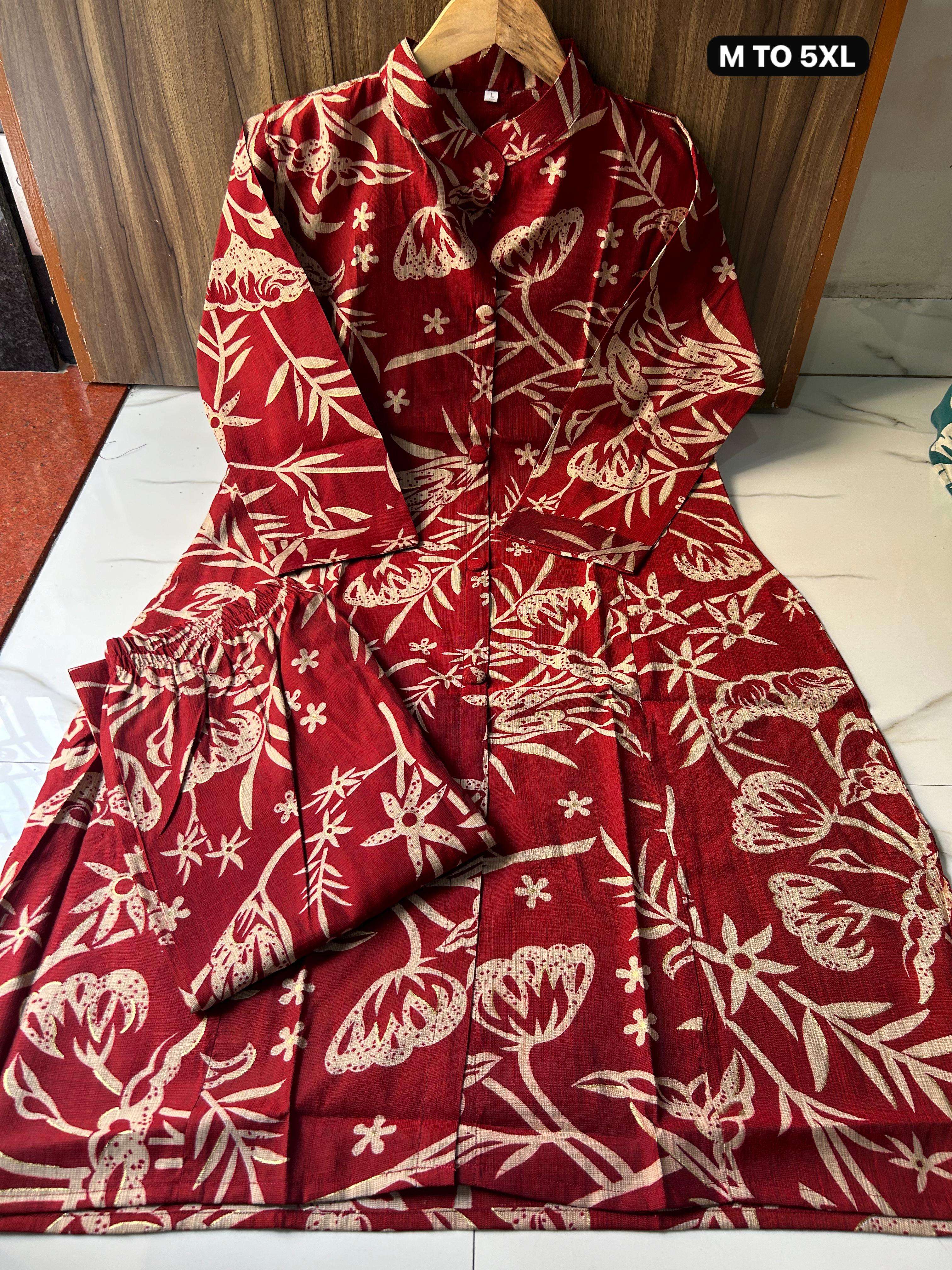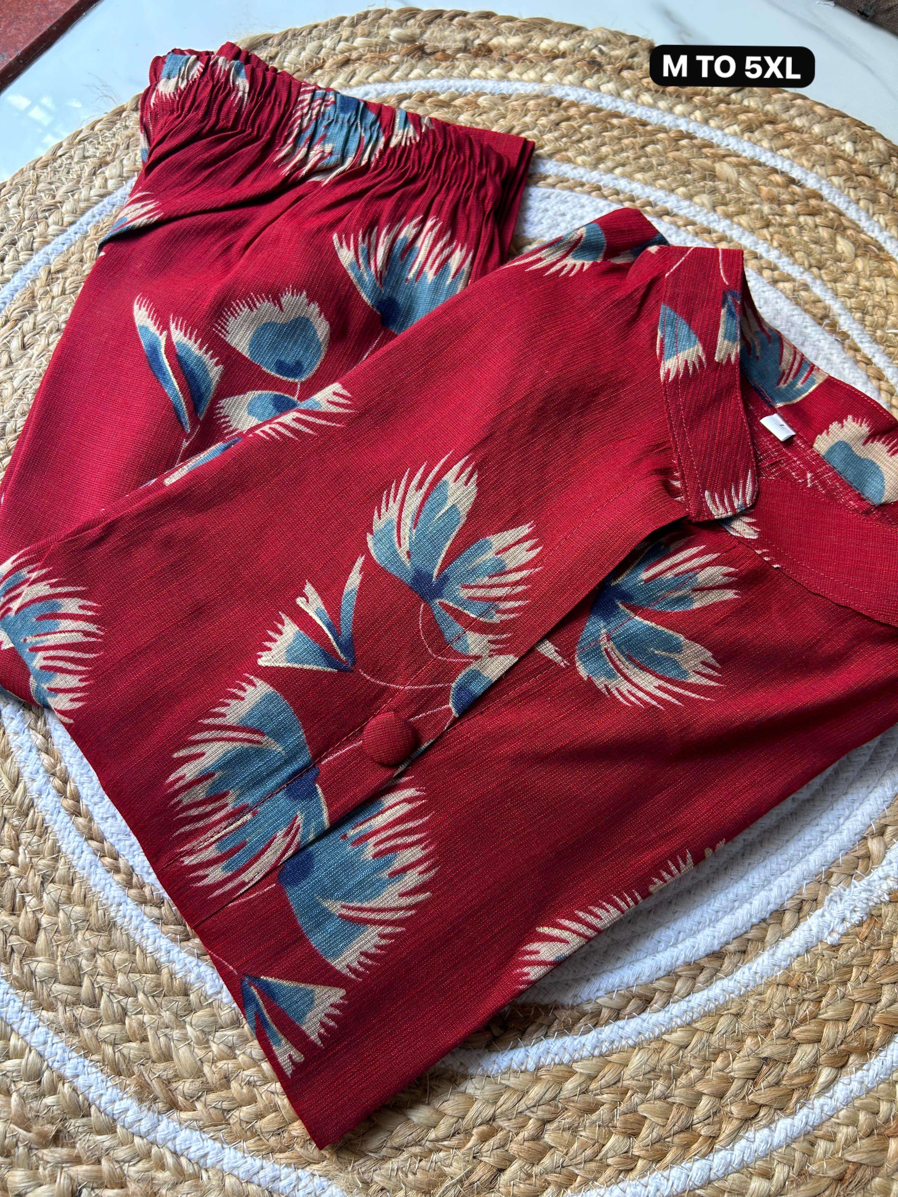 LONG A LINE KURTIS WITH COMFORTABLE PLAZO FABRIC = PREMIUM VARTICAN WITH FULL INTARLOCK & KURTIS ONE SAIDE POCKET PRICE = M TO 2XL :670+ PRICE = 3XL TO 5XL :720+ SINGLE ALSO AVA |