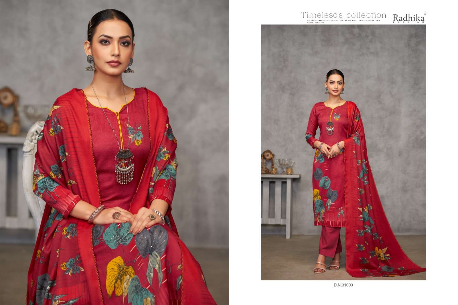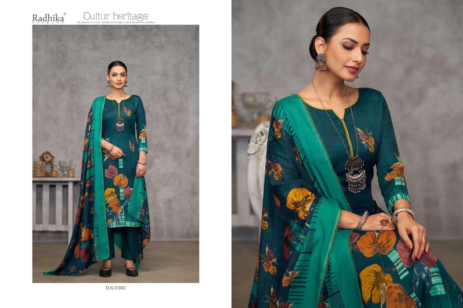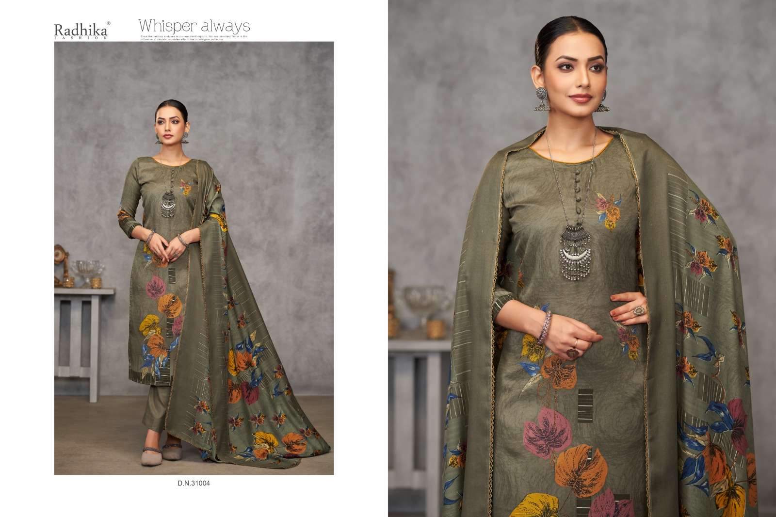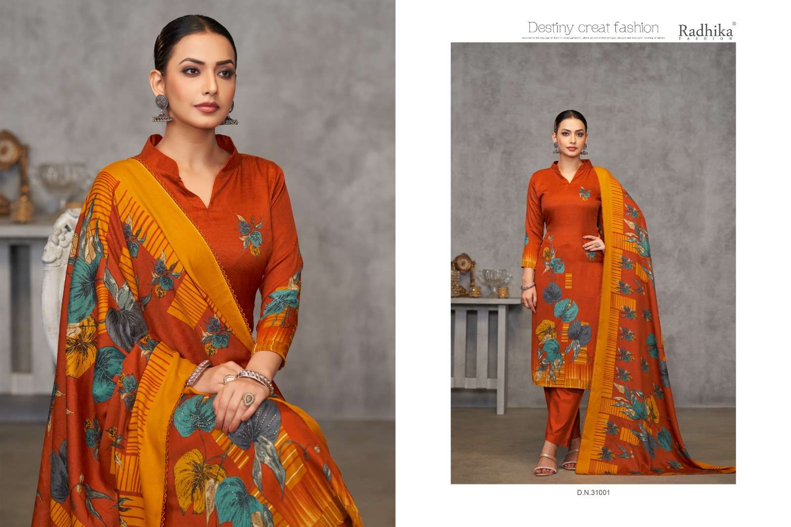 Buy Online SUMYRA SEMINA PASHMINA COLLECTION DESIGNER SUIT FOT UNSTITCH DEALER 4 Pcs of Full Catalogue at Wholesale Price. Looking for SUMYRA SEMINA PASHMINA COLLECTION DESIGNER SUIT FOT UNSTITCH DEALER Full Catalouge at Best Price? Buy Now SUMYRA SEMINA PASHMINA COLLECTION DESIGNER SUIT FOT UNSTITCH DEALER at Wholesale Rate of Rs 2280 with Total 4 Pcs from authroized dealer and supplier of Radhika Fashion Brand. Cost of Each piece is just only Rs 570 which is very low and affordable price to resale the product in your retail store Ethnic Export is Surat based Wholesale Supplier & Dealer of Radhika Fashion Brand. Click on Brand name to Know more about Radhika Fashion Brand's products.Call or Whatsapp on +91-9825759366 for booking or enquiry