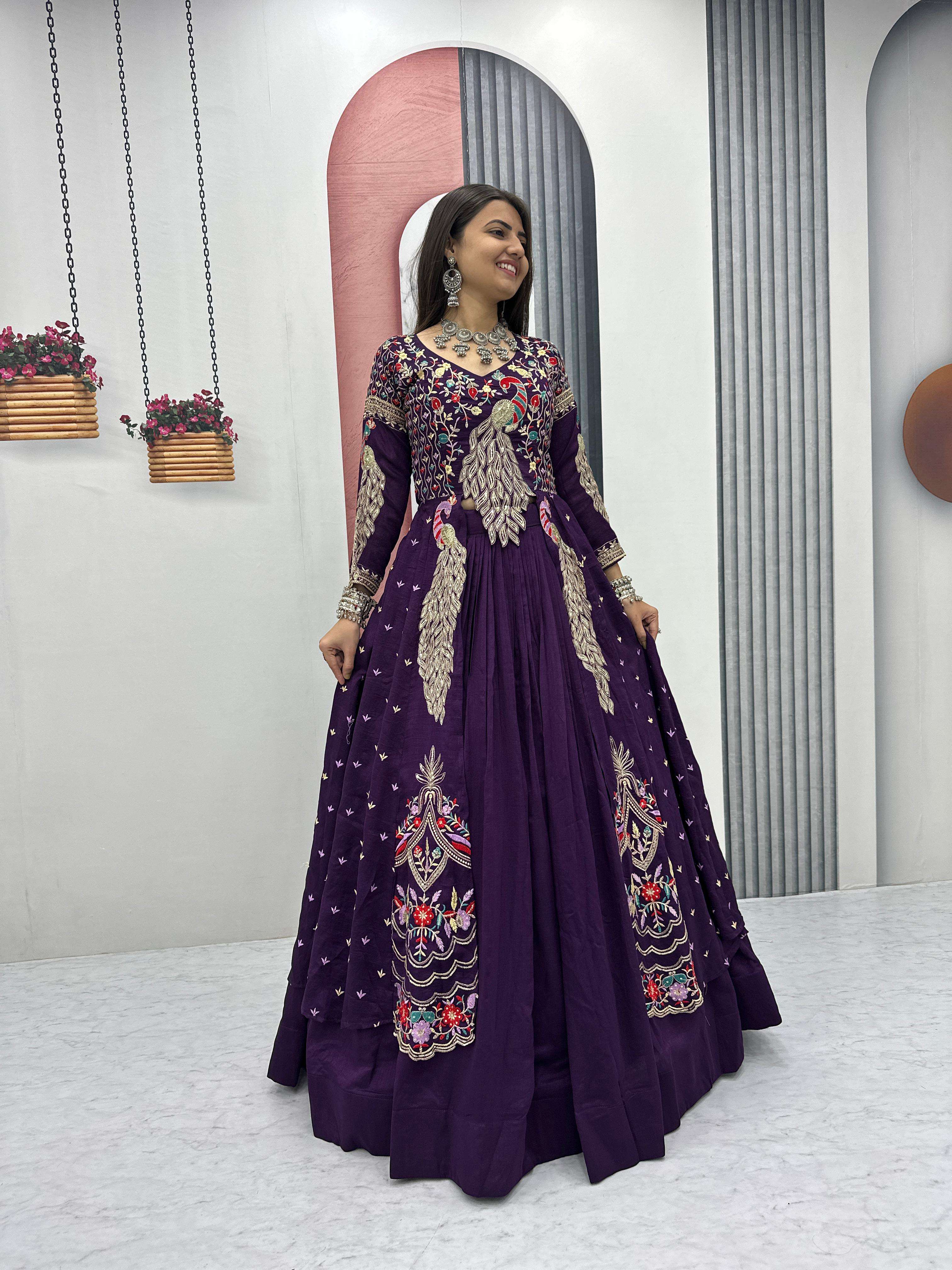 Title | Vichitra silk embroidery Work Heavy look indowestern Style suits Pc 528 |